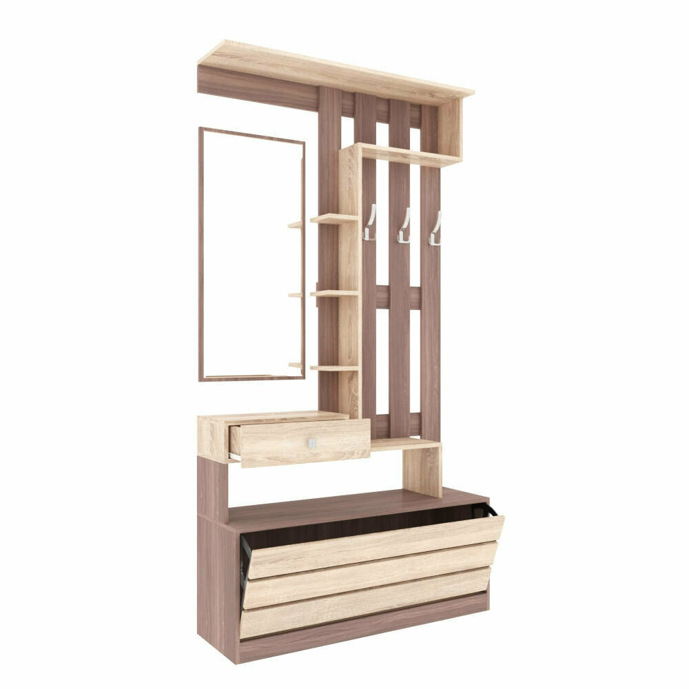 Прихожая комплект САША-6 (правая) от Фант-Мебель, с зеркалом, с обувницей, шкафом и ящиками, 156x203,6x43 см. Ясень темный/Ясень светлый