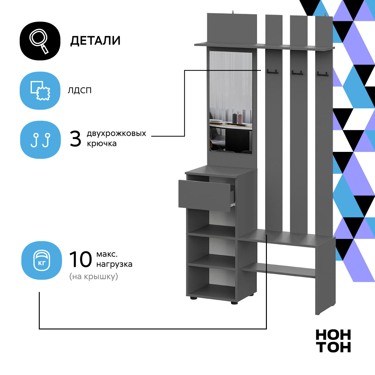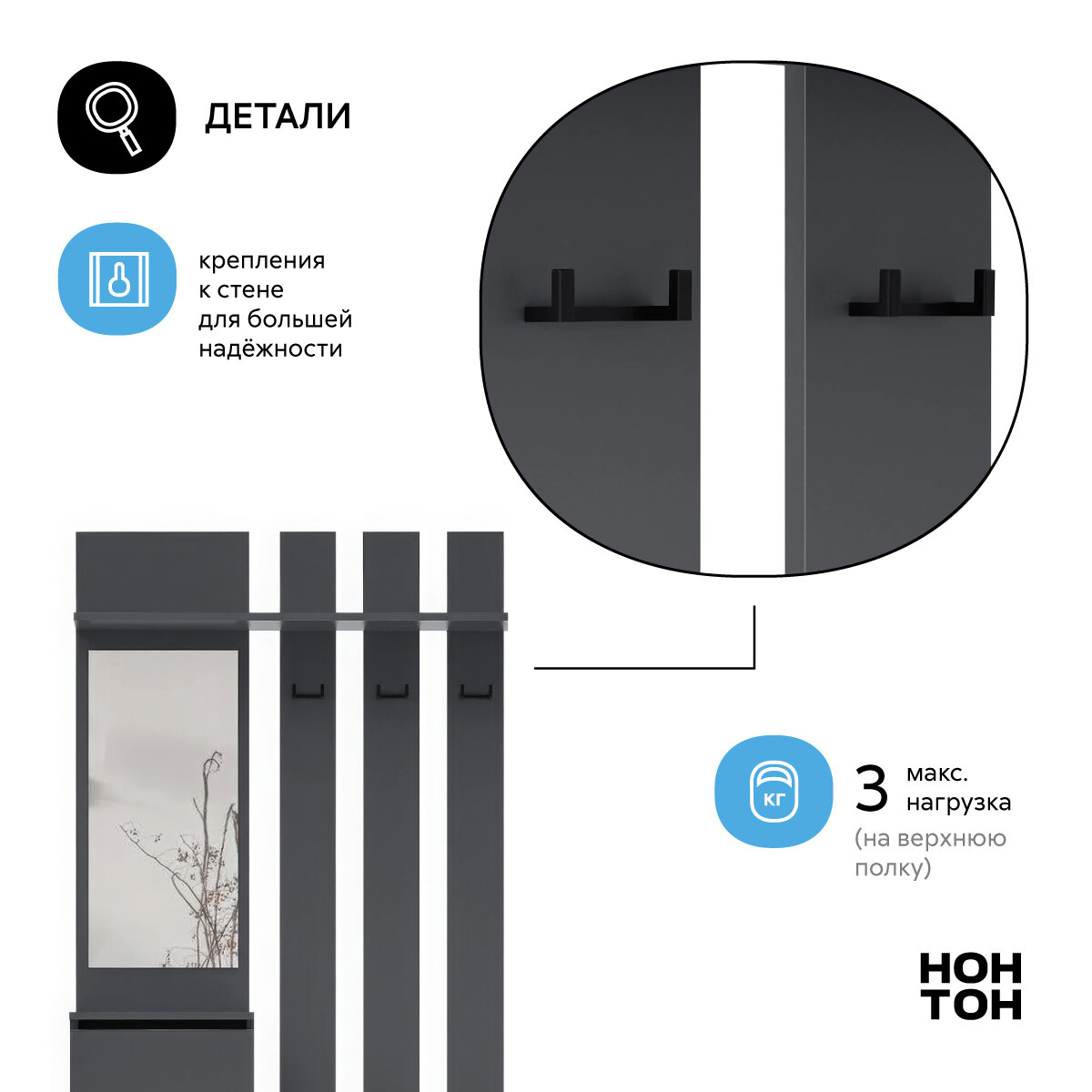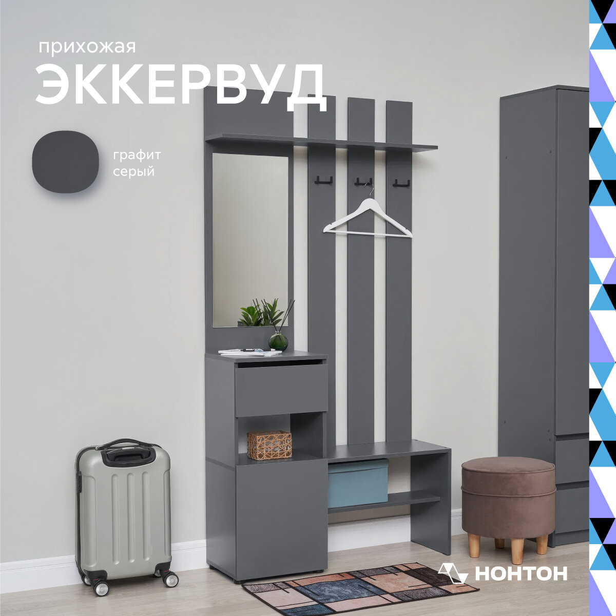 Прихожая с зеркалом Нонтон Эккервуд, графит серый, 100.1x34.8x199.9 см интересное: