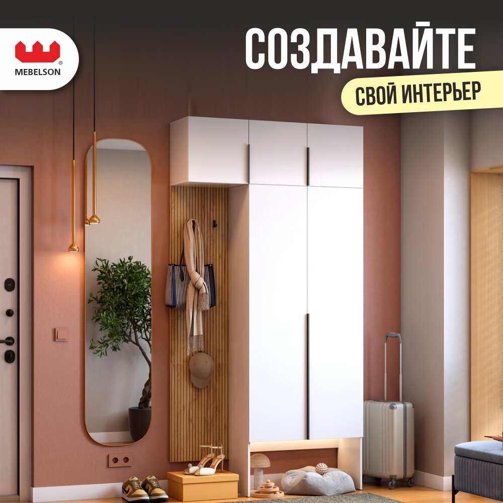 Прихожая "Мебельсон К9", ЛДСП дуб крафт золотой/белое дерево, 120*35*235 см. интересное: