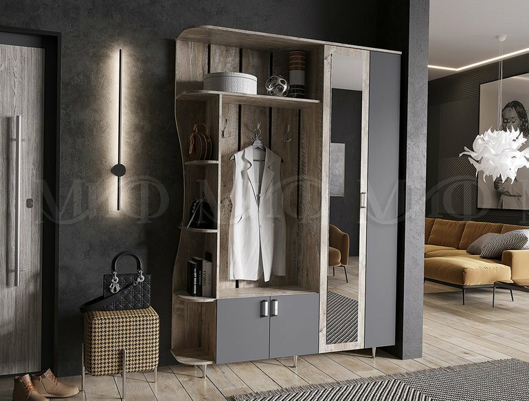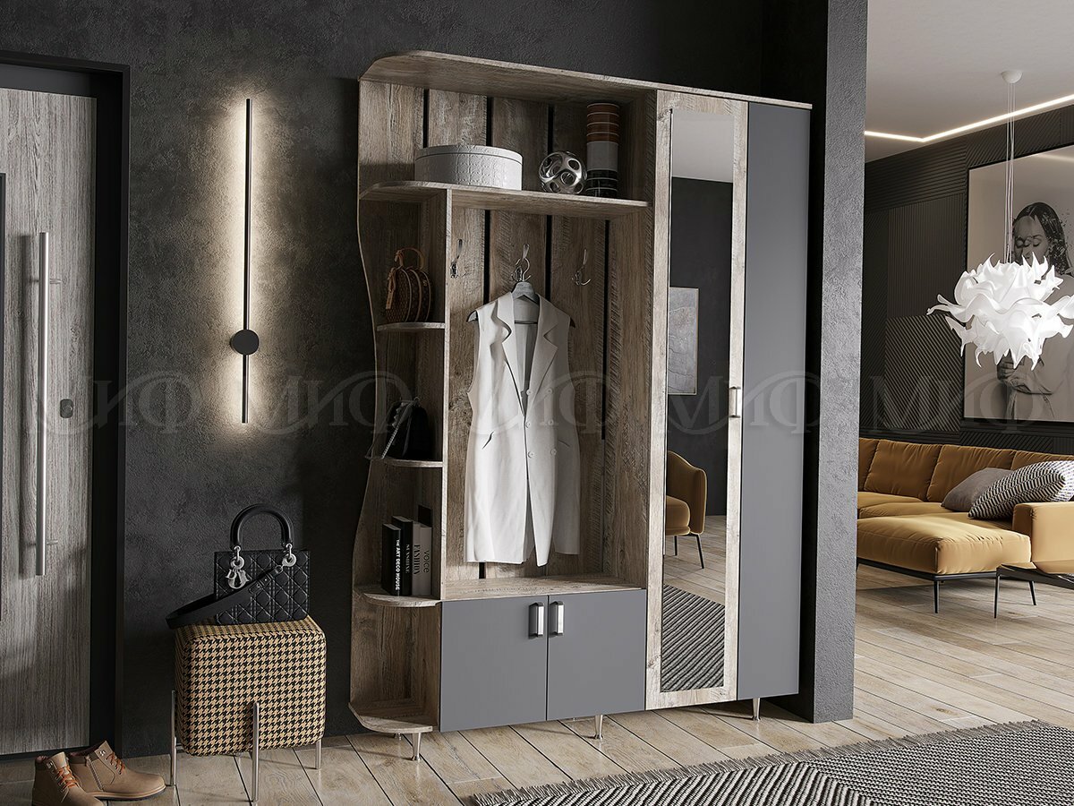 Прихожая Миф Лика № 1 Дуб Юкон, графит с зеркальной дверцей 1500х2150х370 мм интересное: