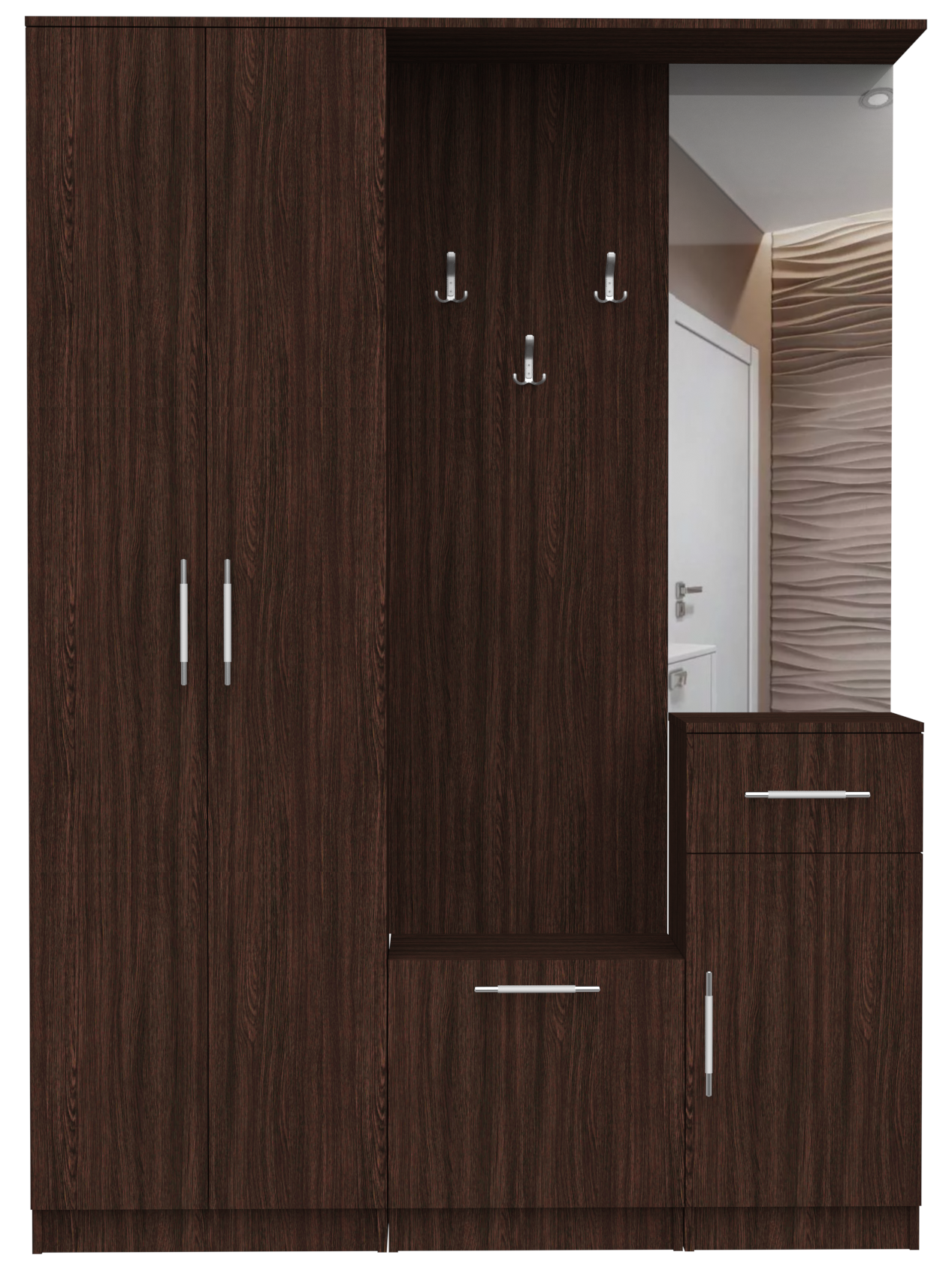 Купить Прихожая с зеркалом и крючками для одежды Арти-5, ШхГхВ: 160х34х208 см, венге