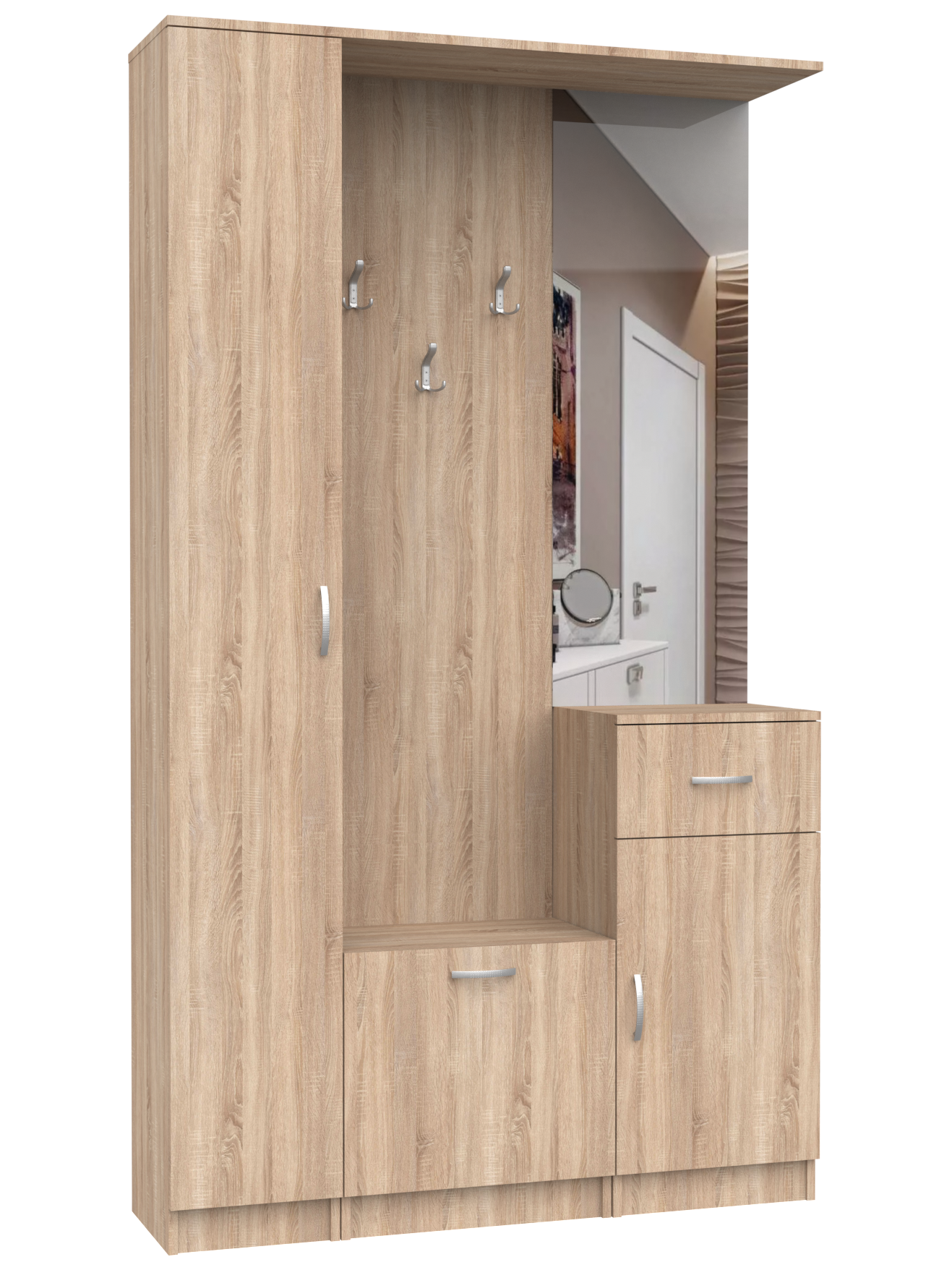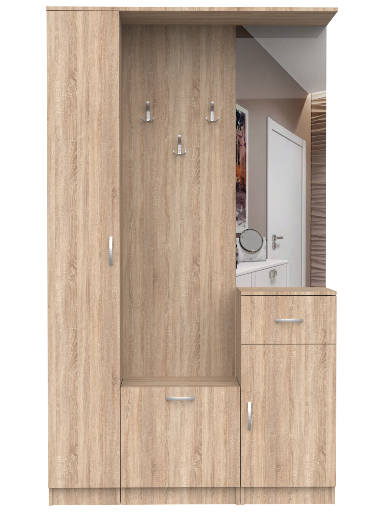 Купить Прихожая с зеркалом и крючками для одежды Арти-4, ШхГхВ: 130х34х208 см, дуб сонома