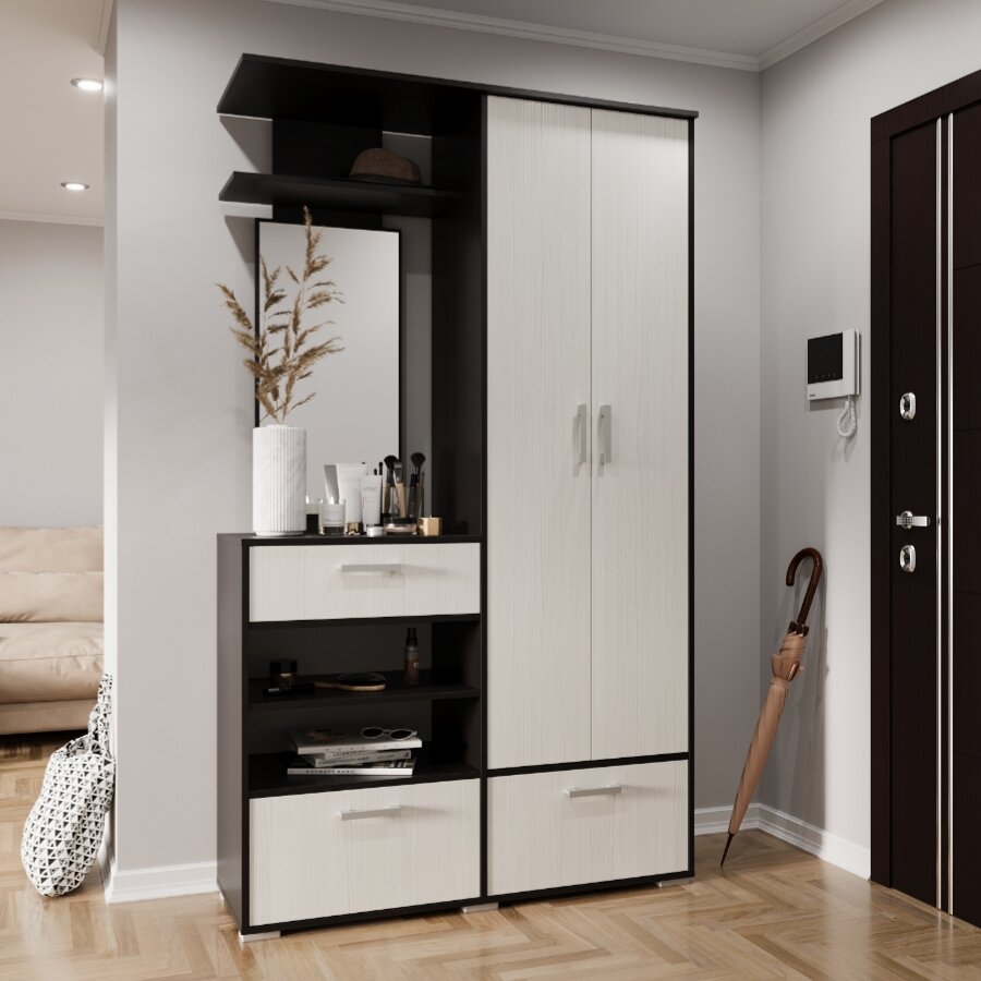 Прихожая Агат 7 с зеркалом, цвет: Венге/Бодега светлая Распашные двери (зеркало слева). 1200х400х2100 мм. интересное: