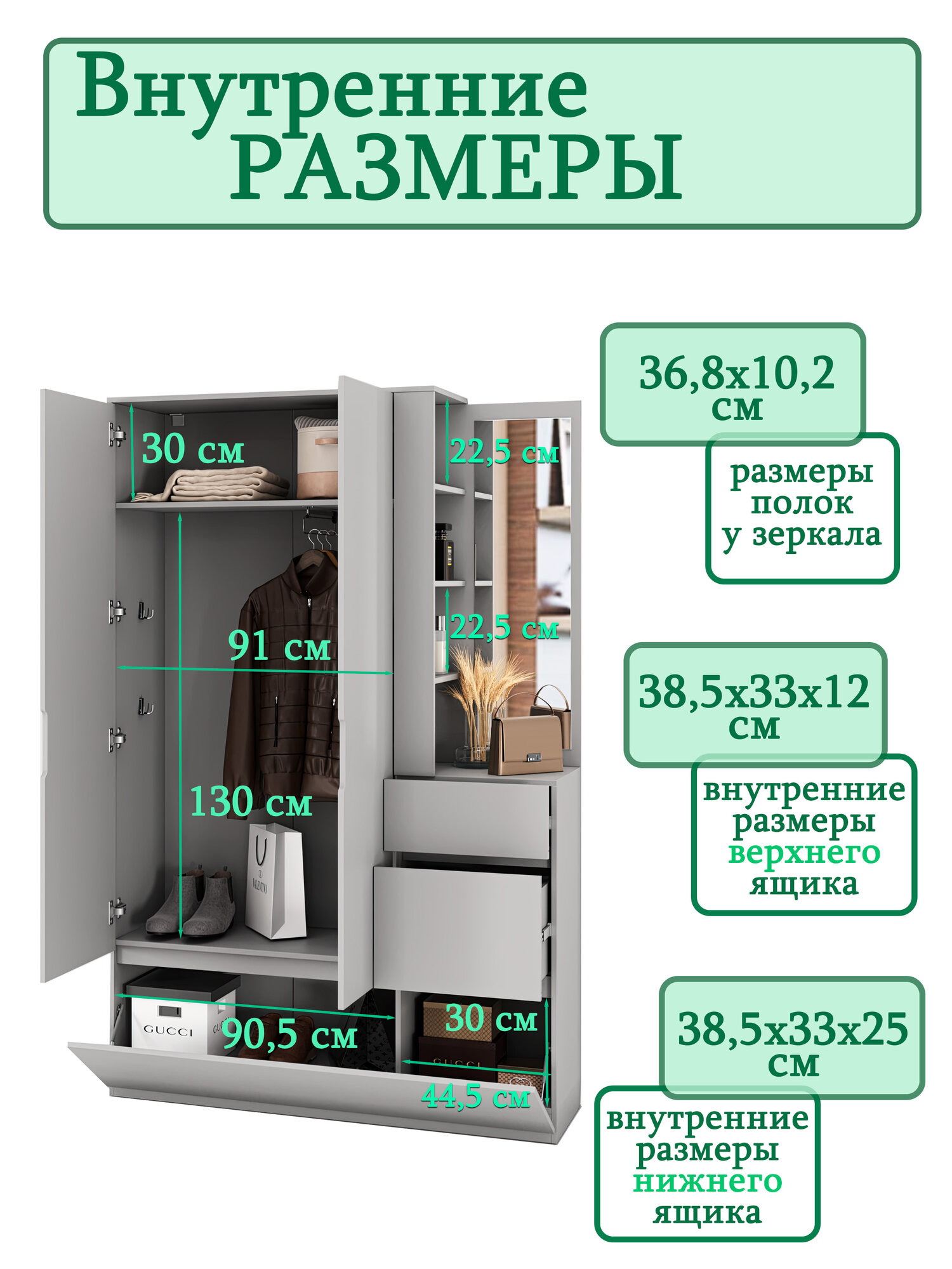 Есэндвич Депо Прихожая, 140х210х40 см (Вулканический серый), с зеркалом, со штангой и ящиками