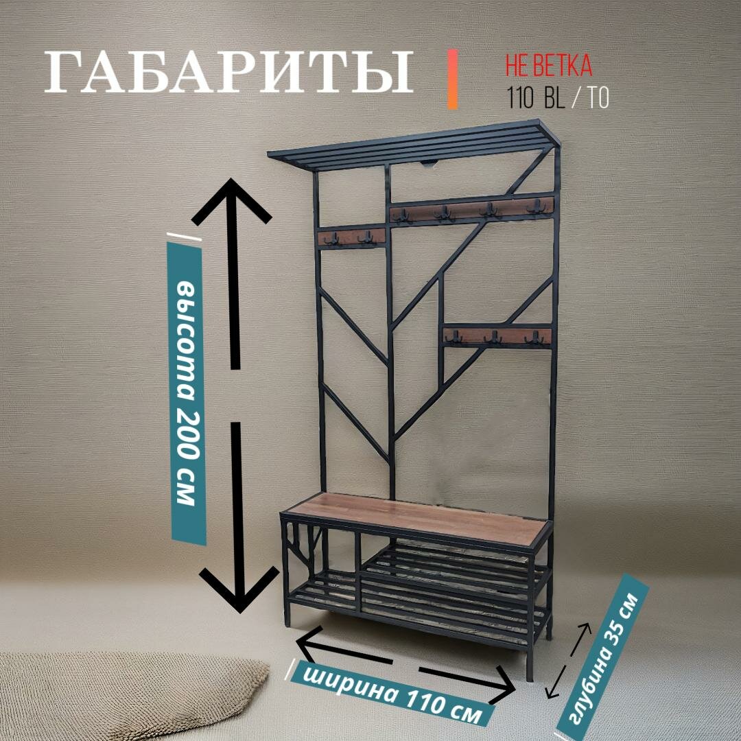 Прихожая Лофт из стали и натурального дерева 110см(Ш)*34см(Г)*200см(В)