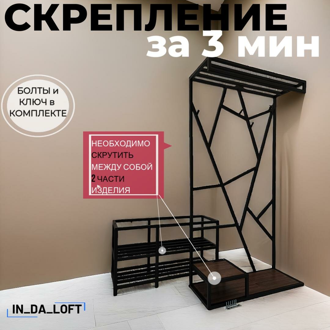 Прихожая Лофт из стали и натурального дерева 80см*34см*200см интересное:
