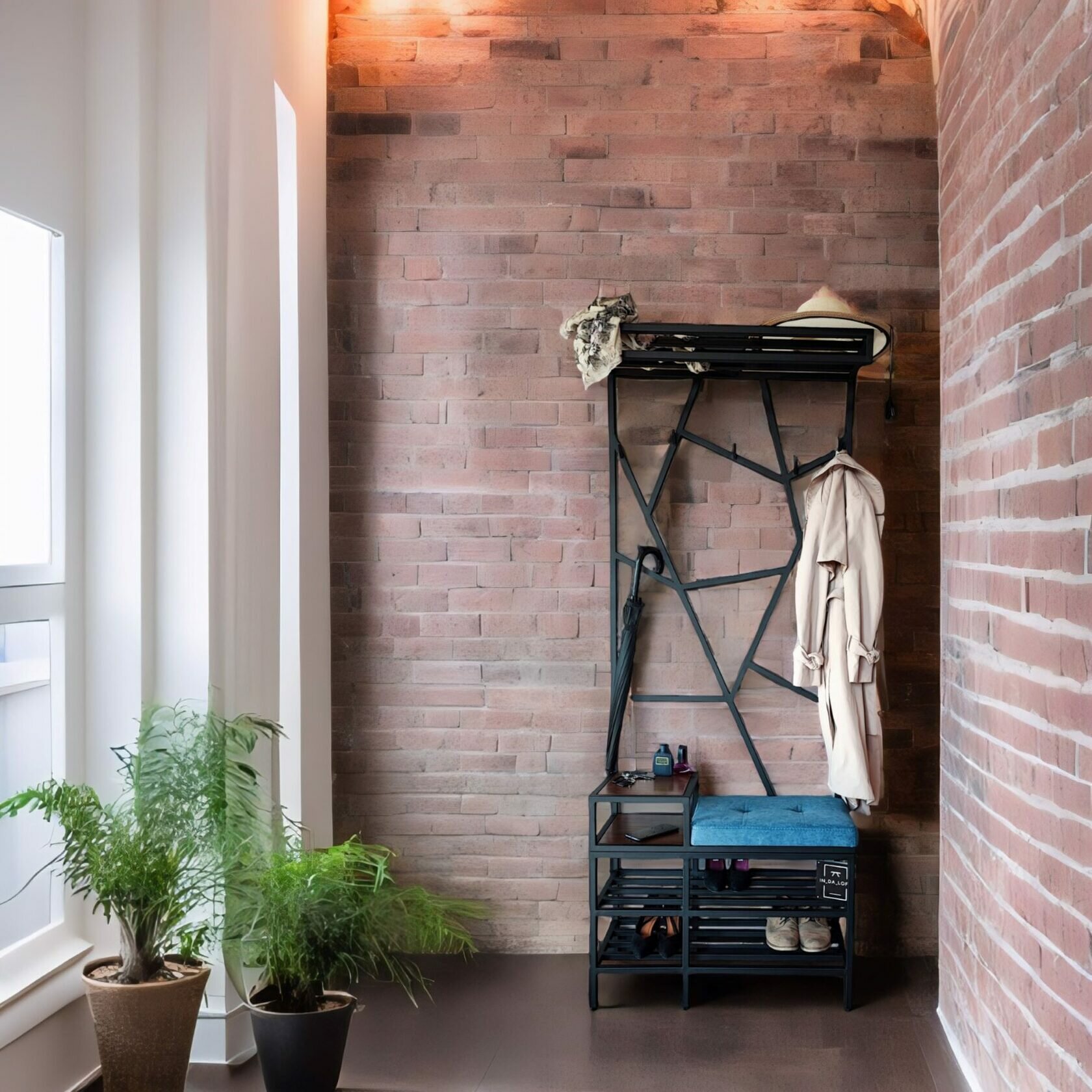 Прихожая Лофт из стали и натурального дерева 80*34*200см интересное:
