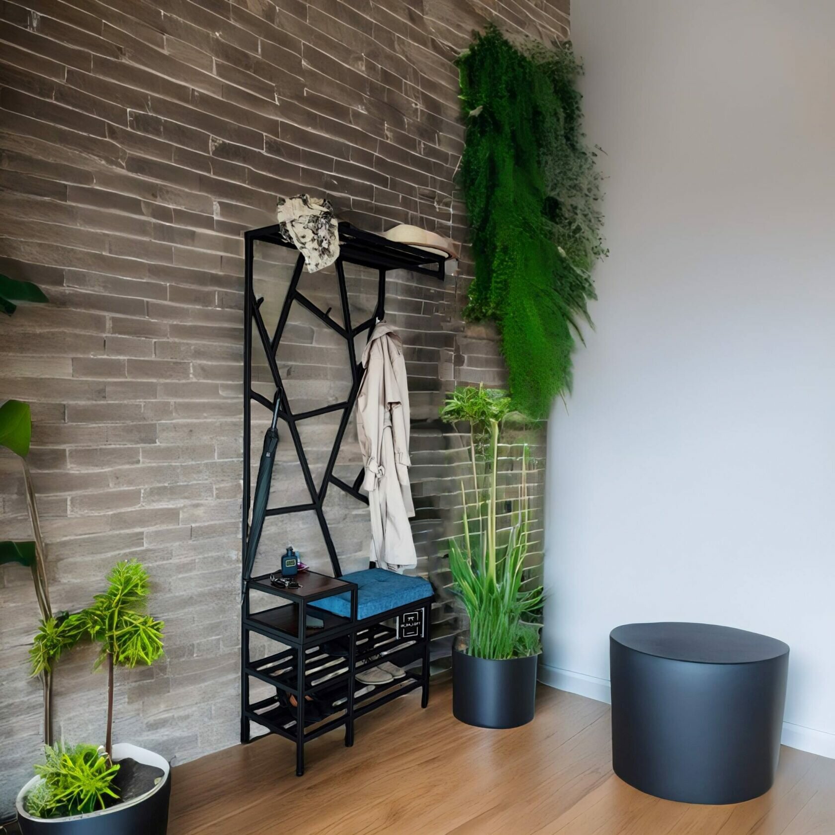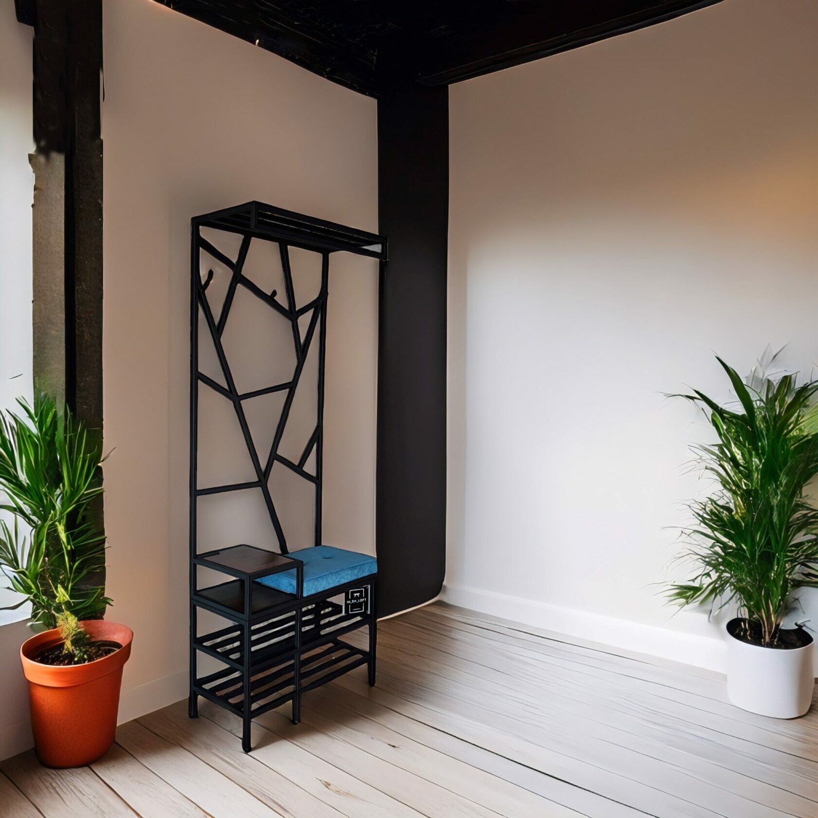 Прихожая Лофт из стали и натурального дерева 80см*34см*200см