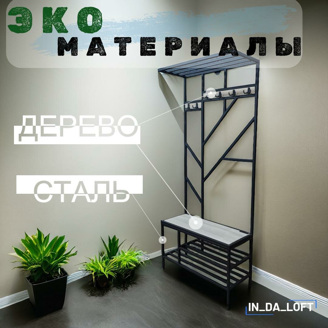 Прихожая Лофт из стали и натурального дерева 90см(Ш)*34см(Г)*200см(В) интересное: