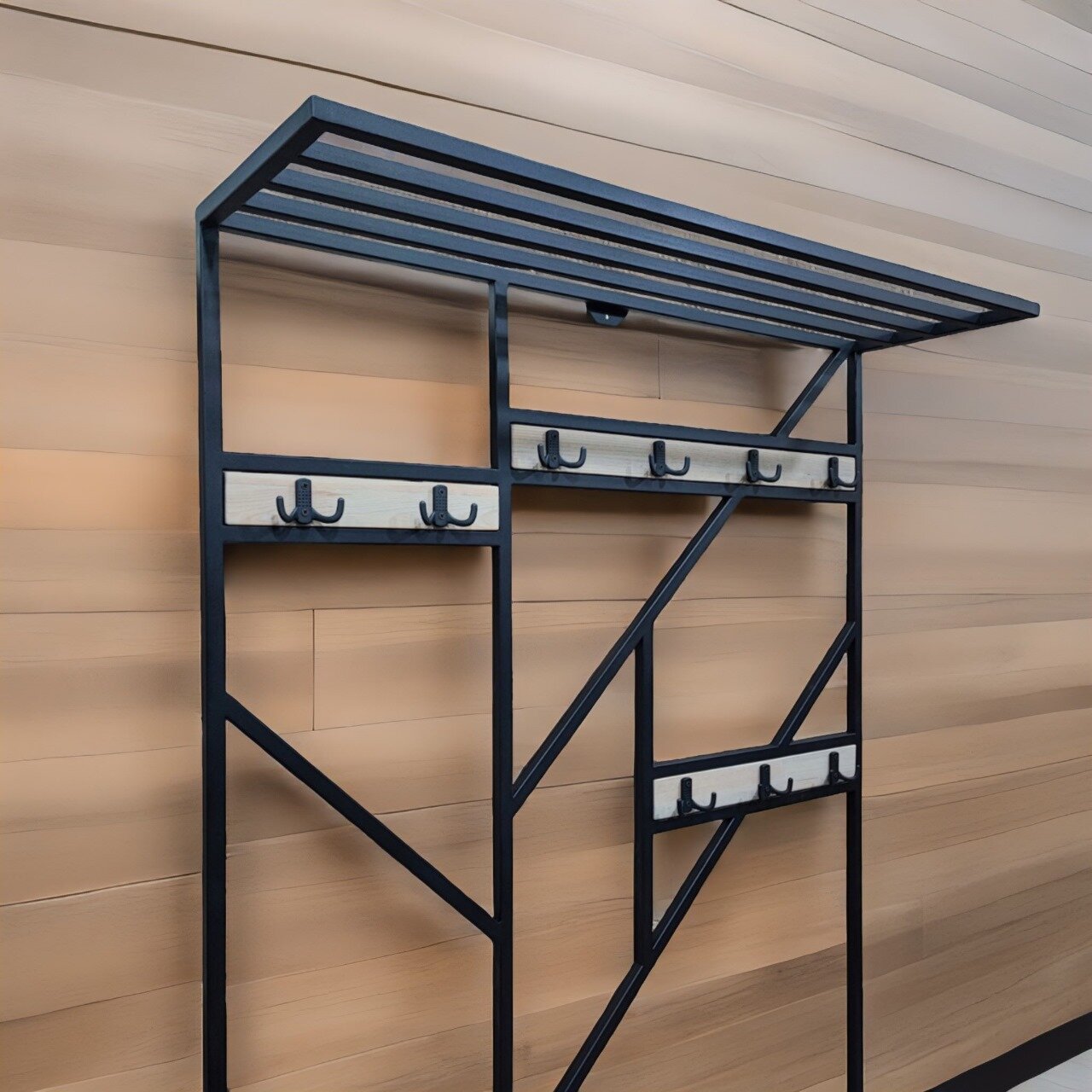 Купить Прихожая Лофт из стали и натурального дерева 110см(Ш)*34см(Г)*200см(В)