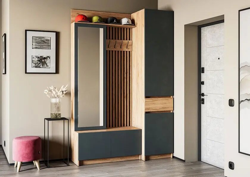 Модульная прихожая Стоуби дизайн 1 (дуб крафт золотой/серый графит) интересное: