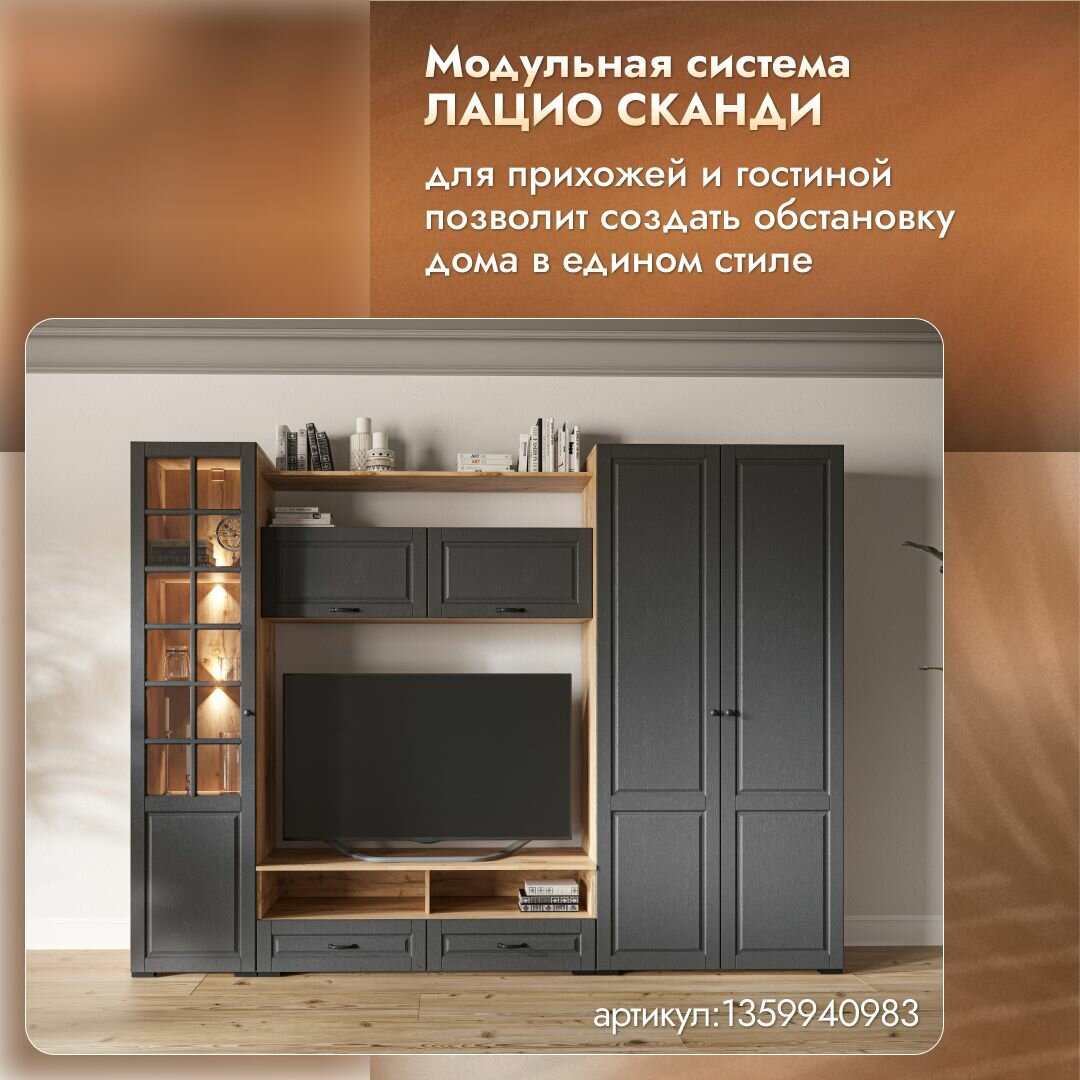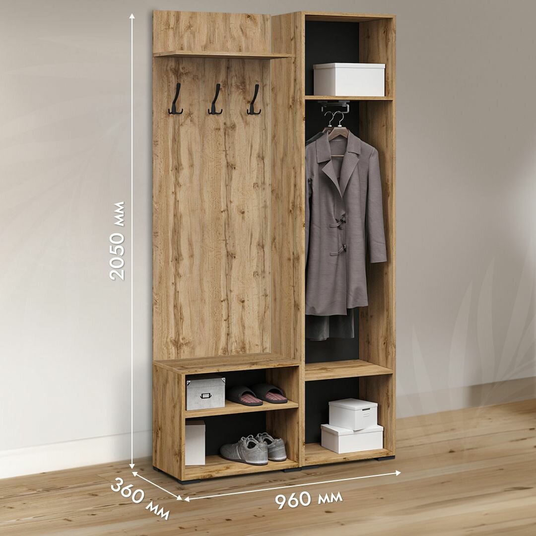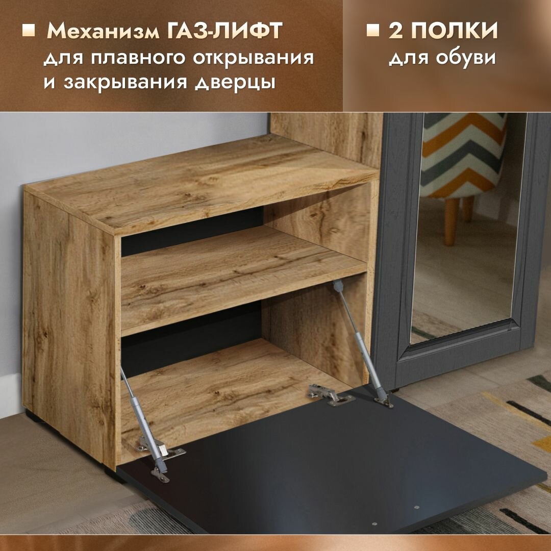 Прихожая мебель комплект Лацио Сканди со шкафом, тумбой для обуви и зеркалом, Вотан/сканди графит, 96х36х205см интересное: