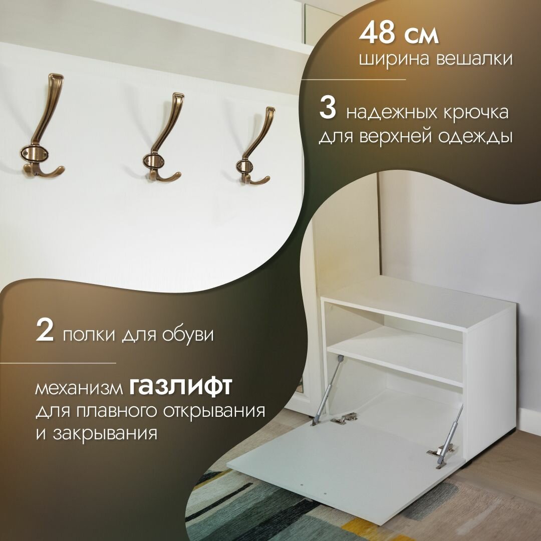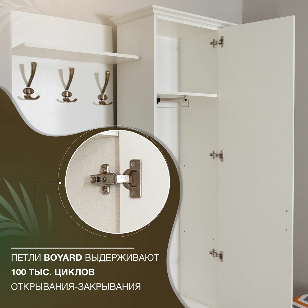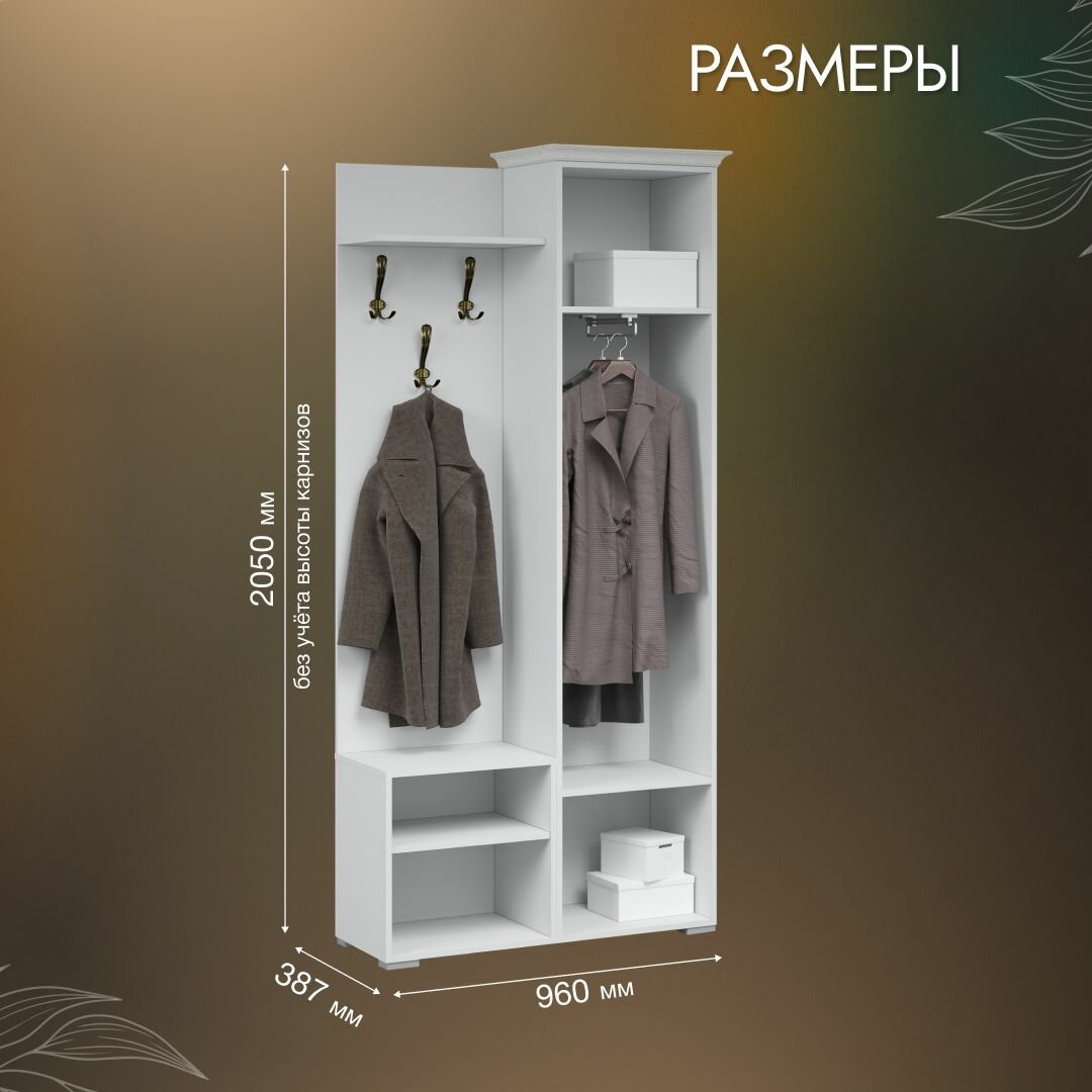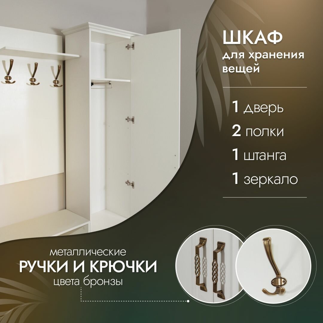 Прихожая мебель комплект Лацио со шкафом с карнизом, тумбой для обуви и зеркалом, Белое дерево, 96х38х205см интересное: