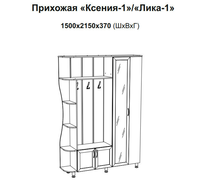 Прихожая Миф Лика № 1 Графит/ дуб крафт белый с зеркальной дверцей 1500х2150х370 мм интересное: