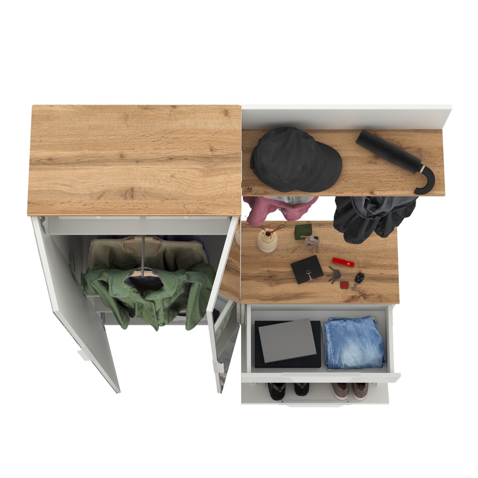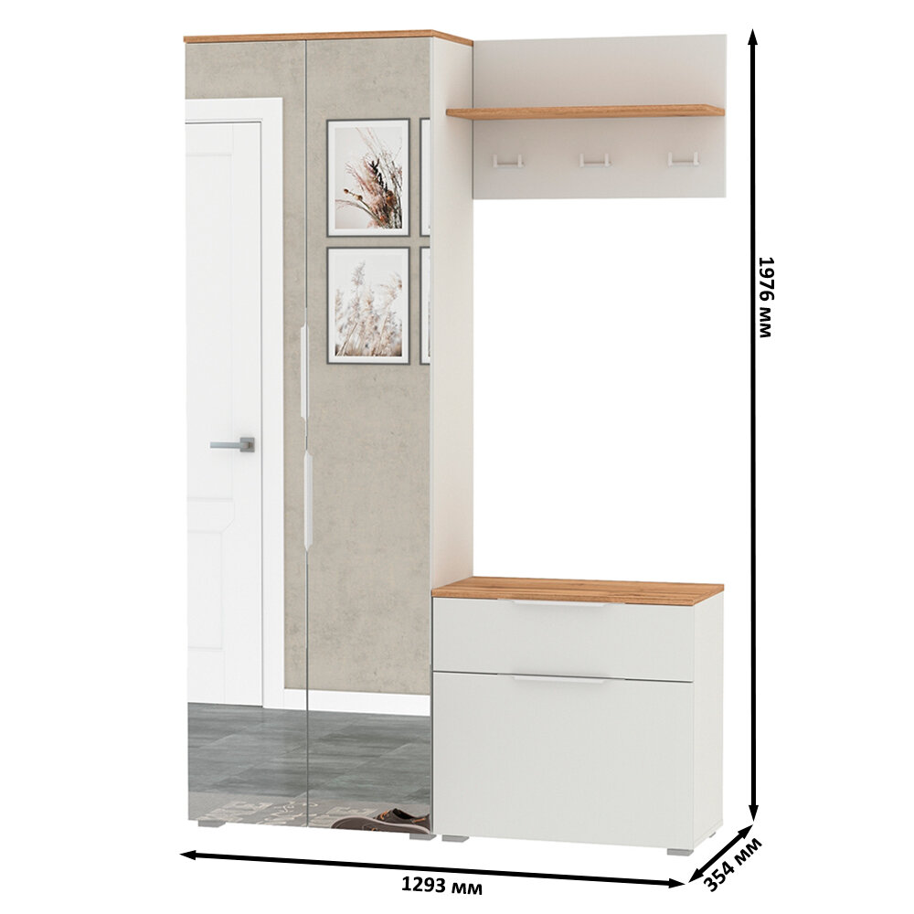 Мебель в прихожую Моби Октава № 10 цвет белый шагрень/дуб крафт золотой, 129,3х35,4х197,6 см интересное: