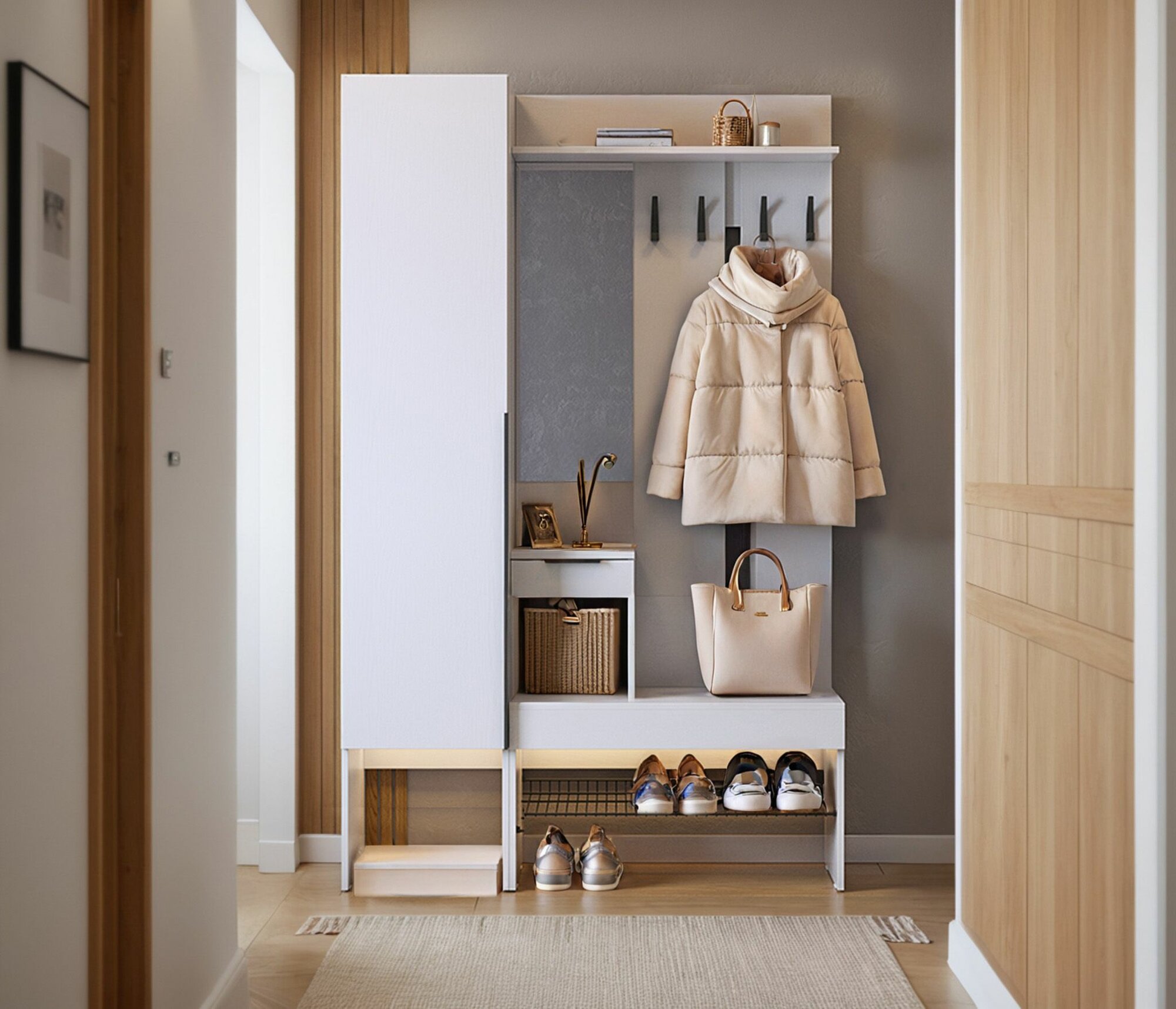 Прихожая Basko К3, комплект мебели в прихожую, Белое дерево, 120х195х34,9 см (ШхВхГ) интересное: