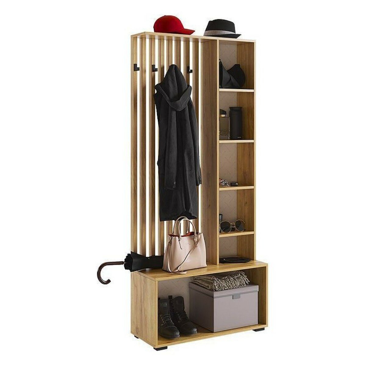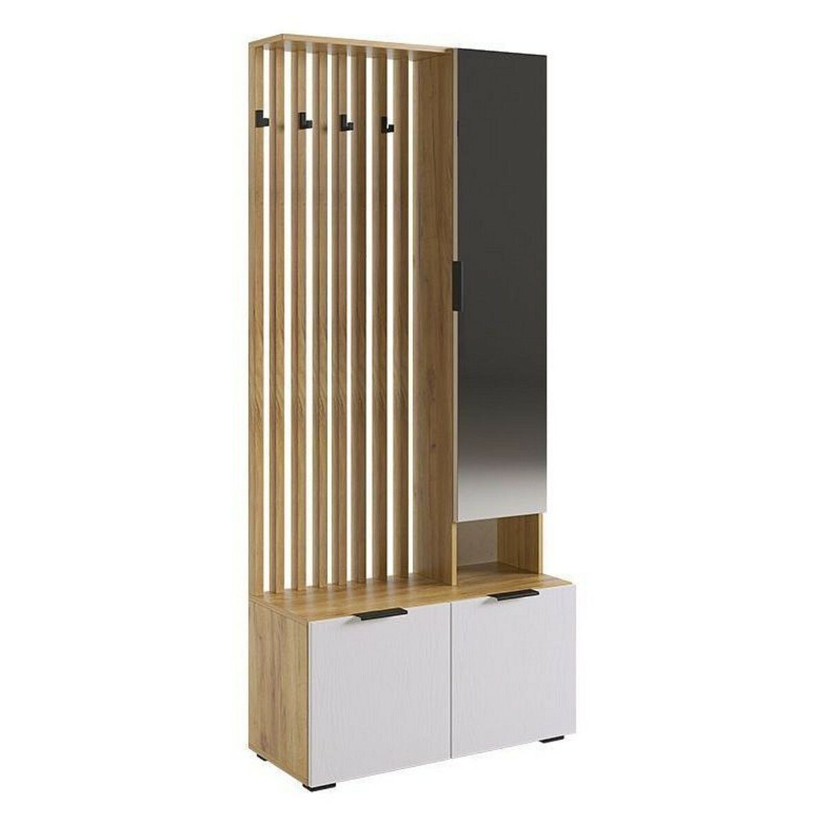 Купить HESBY Стенка для прихожей Elegant Luxury с зеркалом, полками и крючками для одежды, 80x35x183см, дуб крафт золотой / белый