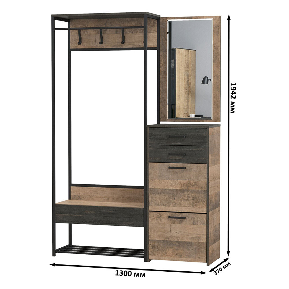 Прихожая с зеркалом и крючками для одежды Арти-4, ШхГхВ: 130х34х208 см, венге