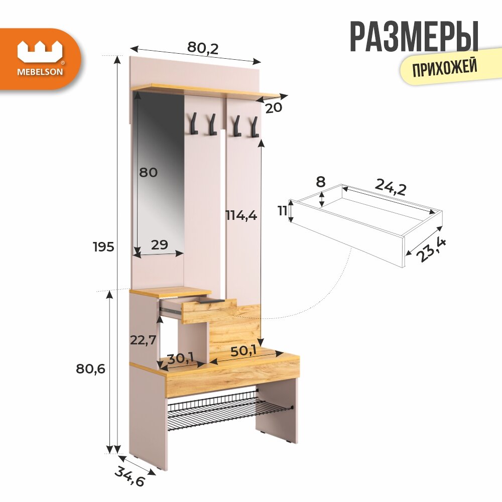 Модульная прихожая "Баско" К5, цвет Кашемир/дуб крафт золотой, 160*35*235 см, Mebelson интересное: