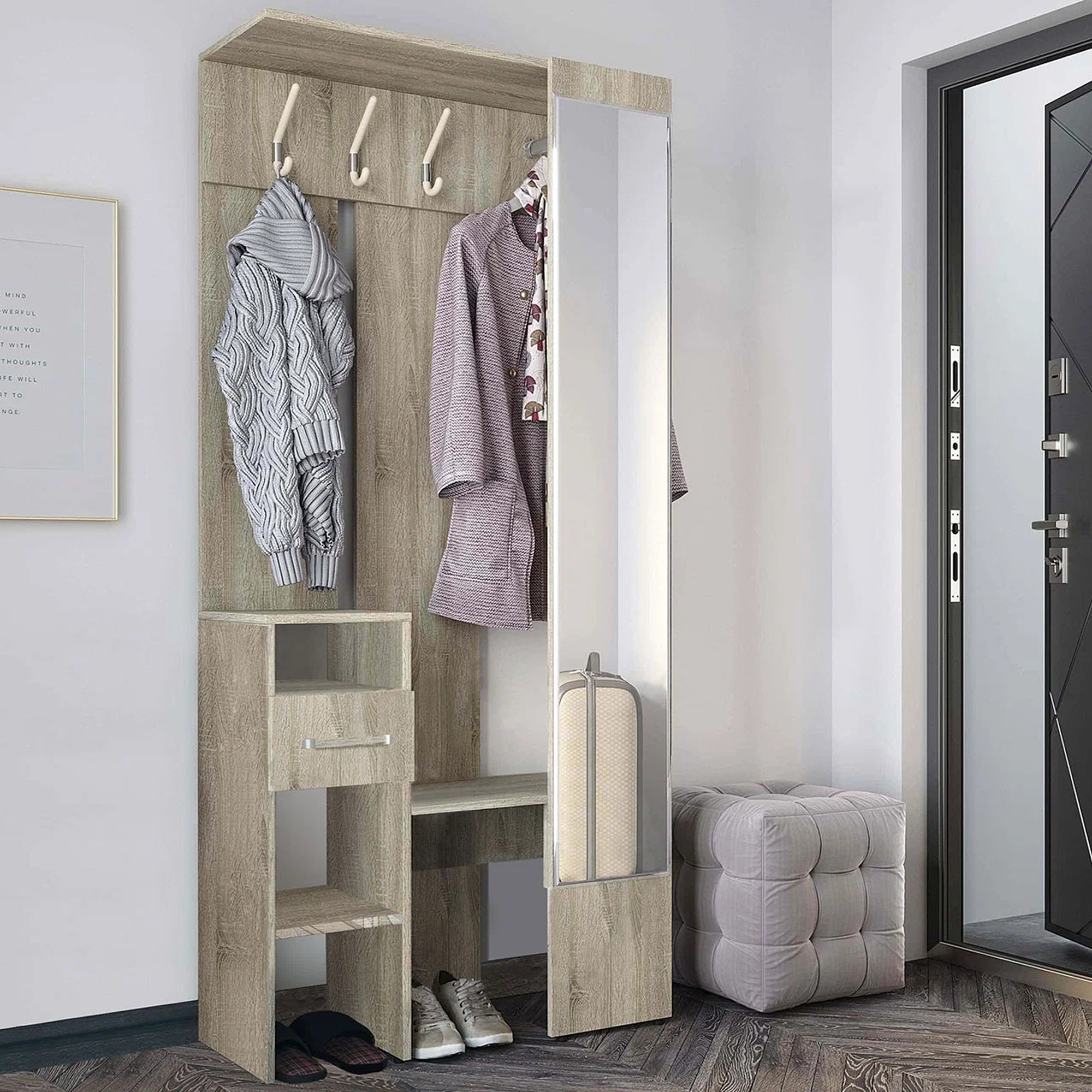 Купить Прихожая комплект мебели с зеркалом и ящиком Дуб сонома 85см - БТ0333