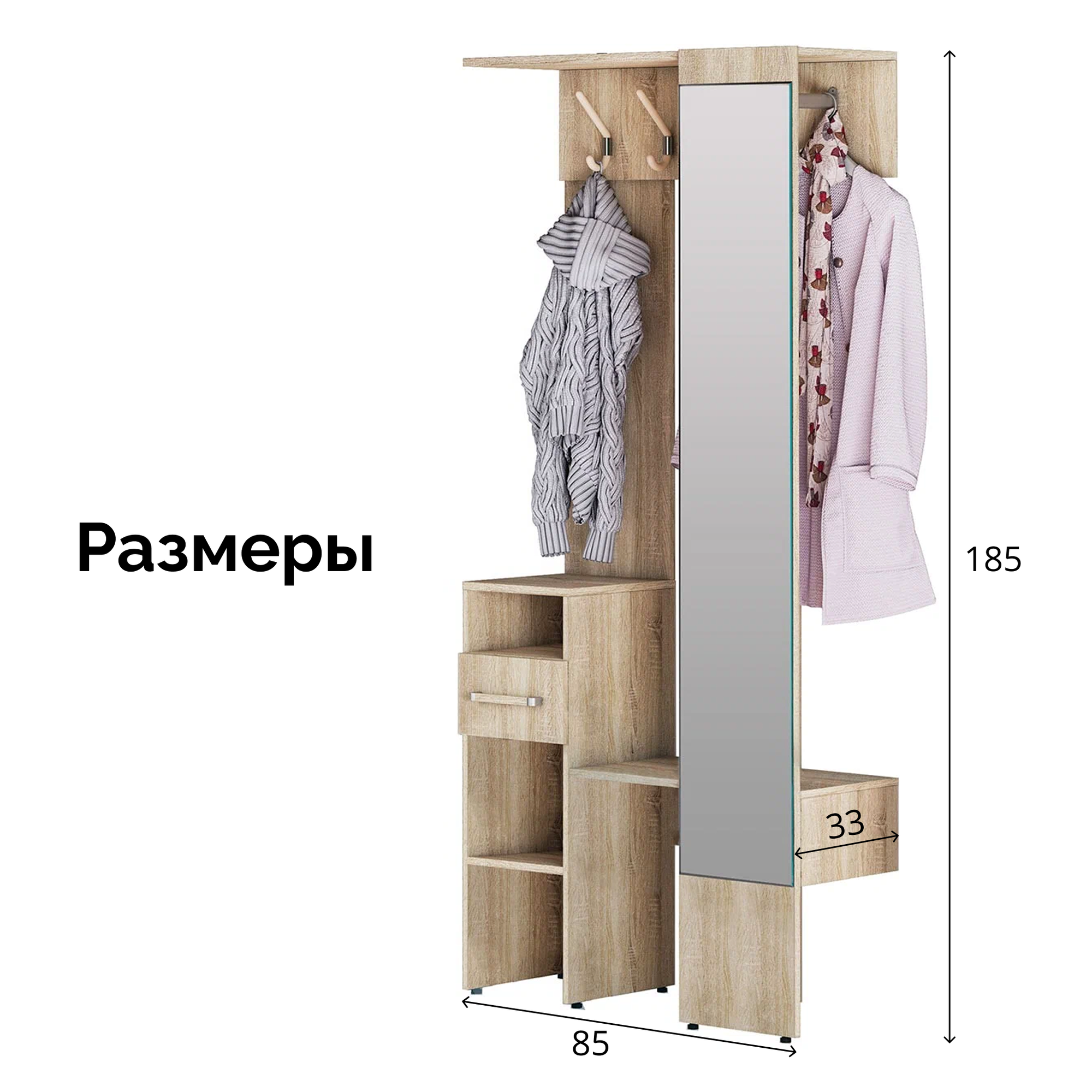 Прихожая комплект мебели с зеркалом и ящиком Дуб сонома 85см - БТ0333 интересное: