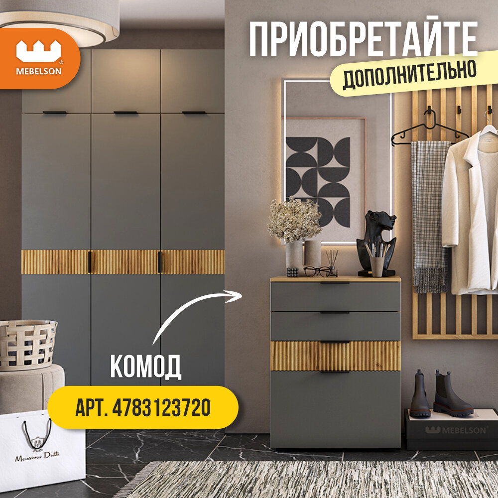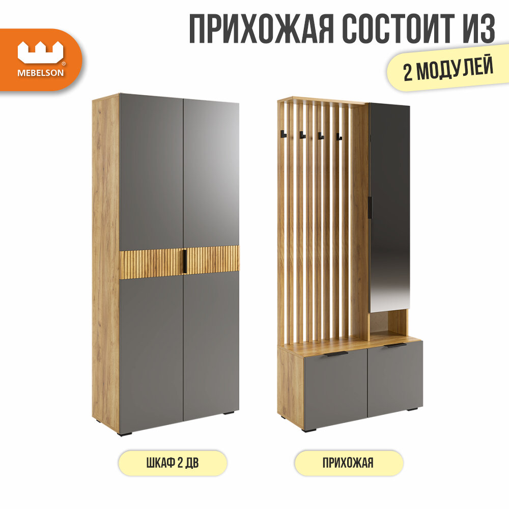 Прихожая Мебельсон Бери К3 дуб крафт золотой/графит Размеры: Высота 1826мм Глубина 350мм Ширина 1600мм