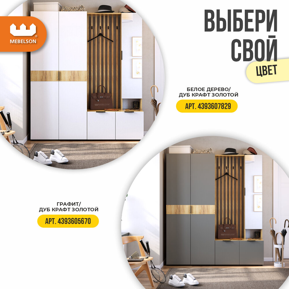 Модульная прихожая "Бери К3", дуб крафт золотой/графит, 160х35х182,6 см, Mebelson интересное: