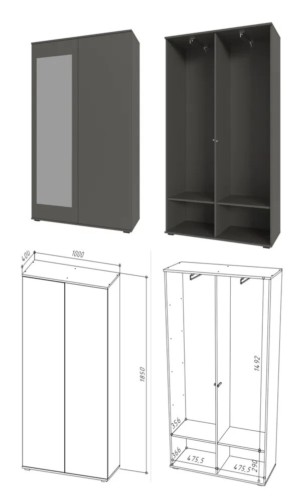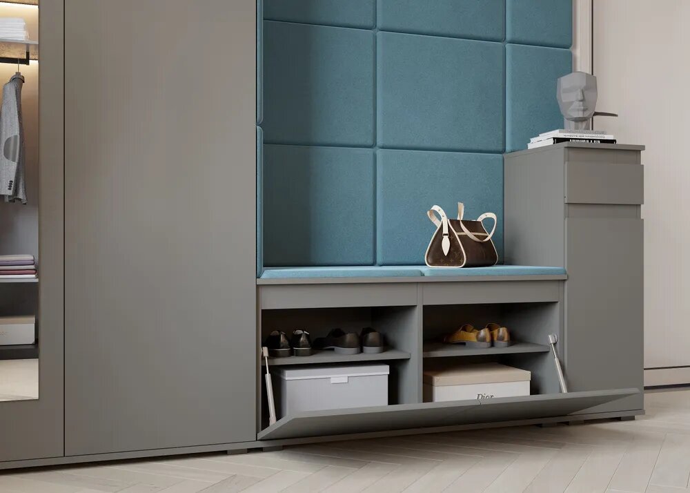 Прихожая, прихожая комплект Stark, Серый Графит / Велюр Бирюзовый 230х225х40 см (ШхВхГ) интересное:
