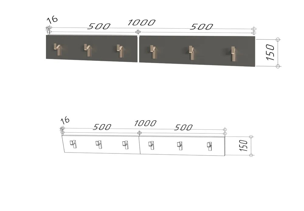 Вешалка в прихожую Мебель на Руси "Дуглас" 40х150х23,5 Дуб крафт золотой