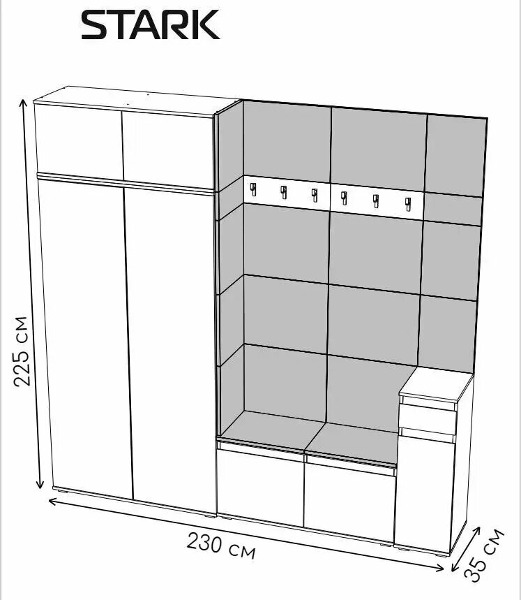 Ниже Вы можете прочитать отзывы на Прихожая, прихожая комплект Stark, Серый Графит / Велюр Бирюзовый 230х225х40 см (ШхВхГ), ознакомится с подробными характеристиками, посмотреть интересные обзоры и фотографии на Прихожая, прихожая комплект Stark, Серый Графит / Велюр Бирюзовый 230х225х40 см (ШхВхГ).