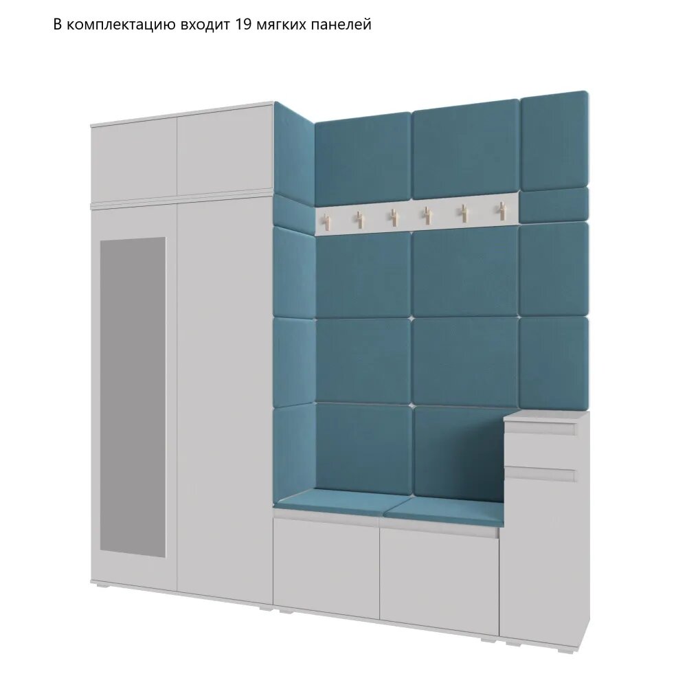 Прихожая, прихожая комплект Stark, Белый / Велюр Бирюзовый 230х225х40 см (ШхВхГ) интересное: