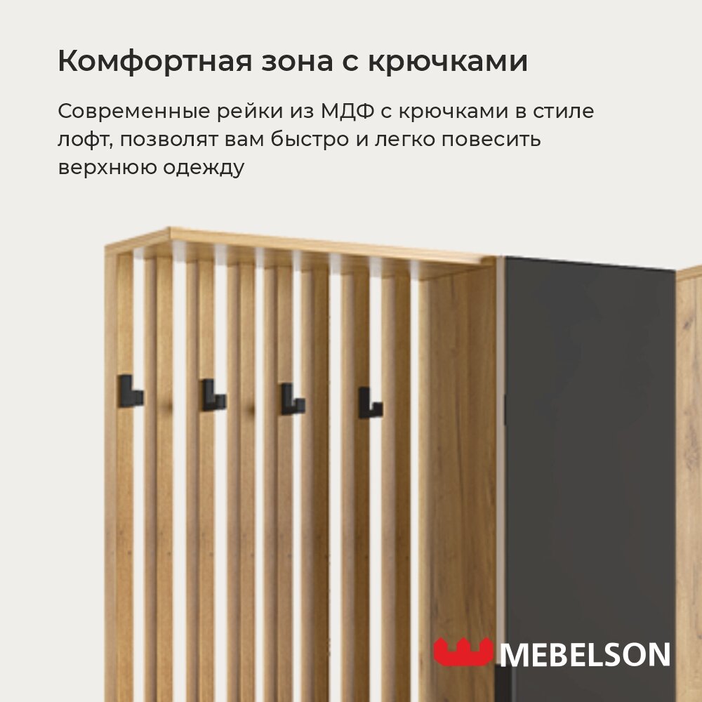 Прихожая Мебельсон Бери дуб крафт золотой/графит Размеры: Высота 1826мм Глубина 350мм Ширина 800мм