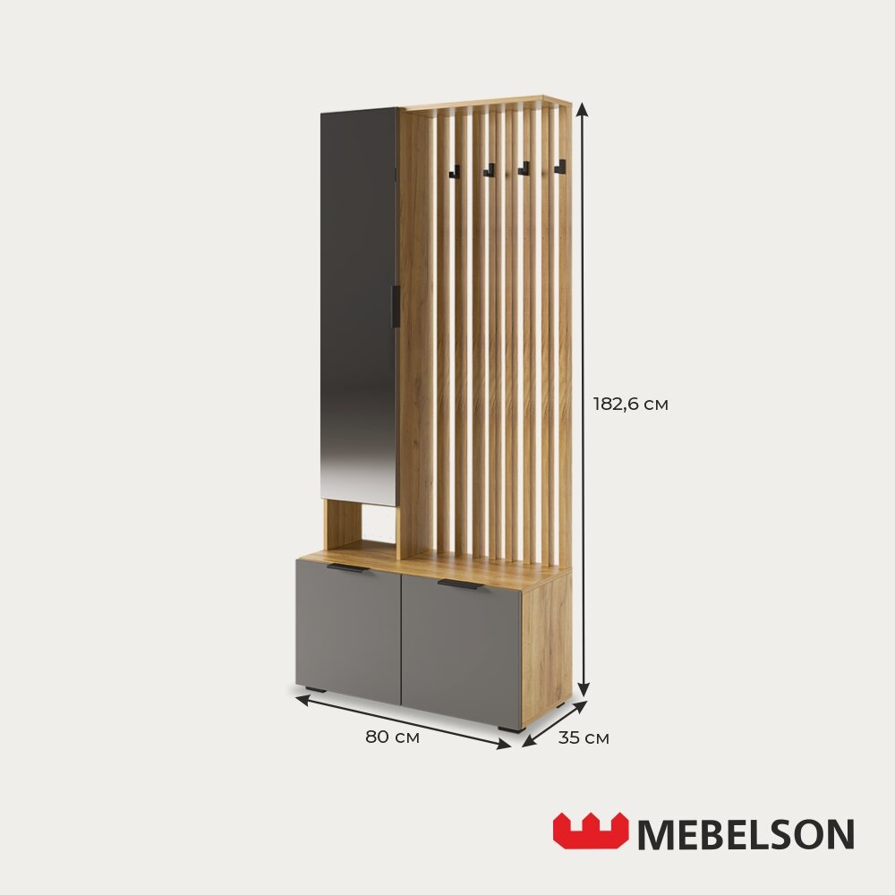 Прихожая Мебельсон Бери дуб крафт золотой/графит Размеры: Высота 1826мм Глубина 350мм Ширина 800мм