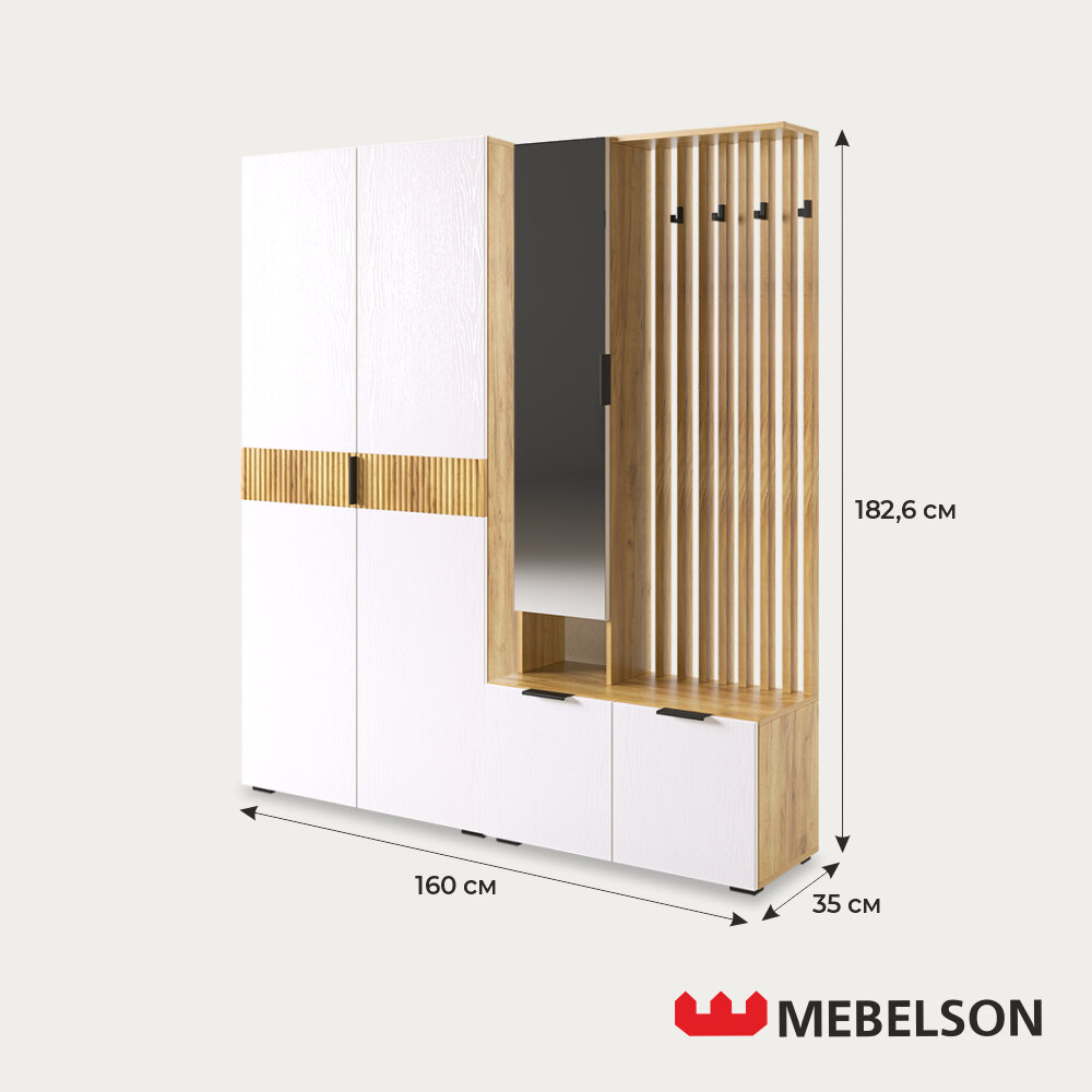 Модульная прихожая "Бери К3", дуб крафт золотой/белое дерево, 160х35х182,6 см, Mebelson интересное: