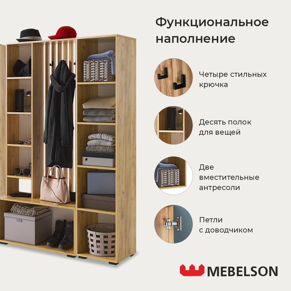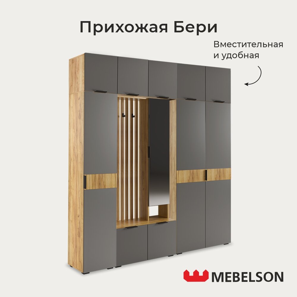 Модульная прихожая "Бери К1", дуб крафт золотой/графит, 200х350х222,6 см, Mebelson интересное:
