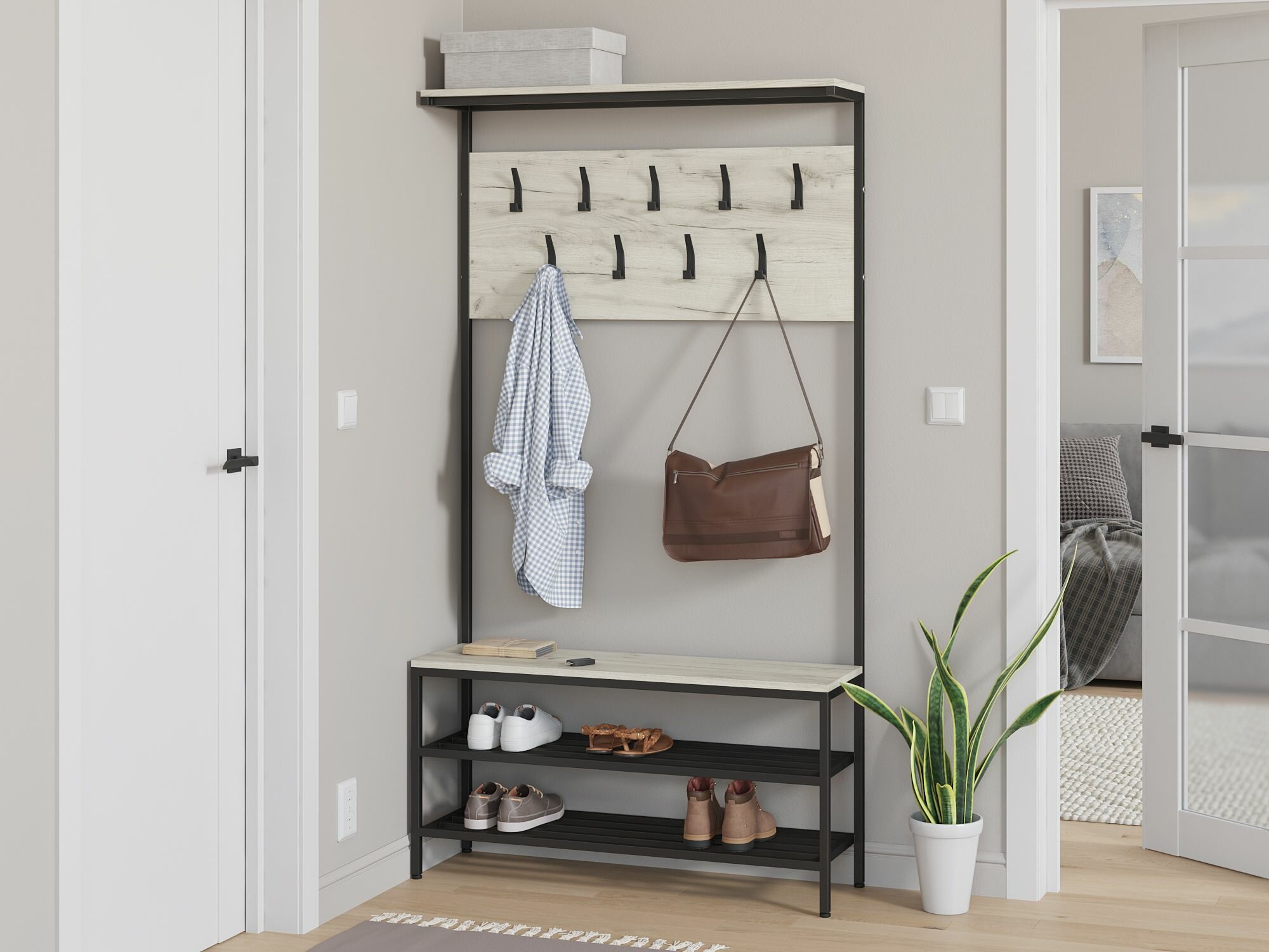 Купить Прихожая Айсберг Лофт Лайт 100 Черный/Дуб крафт белый