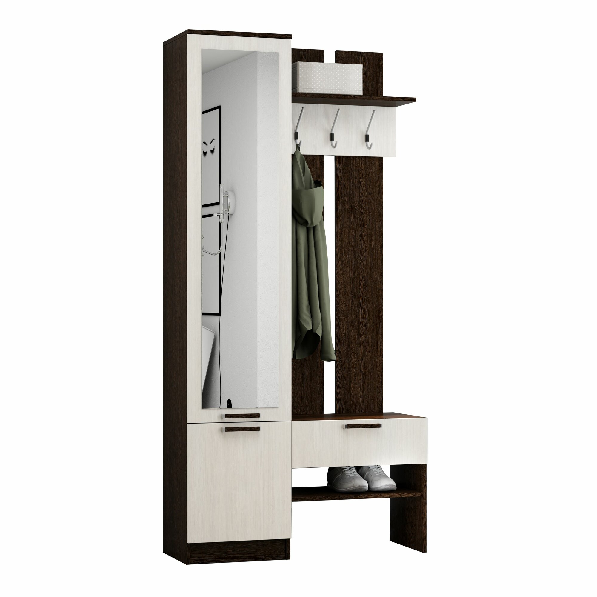 Купить Прихожая комплект София от Линаура, с зеркалом, с обувницей, шкафом и ящиком, 95x195x36 см. Венге/Анкор светлый