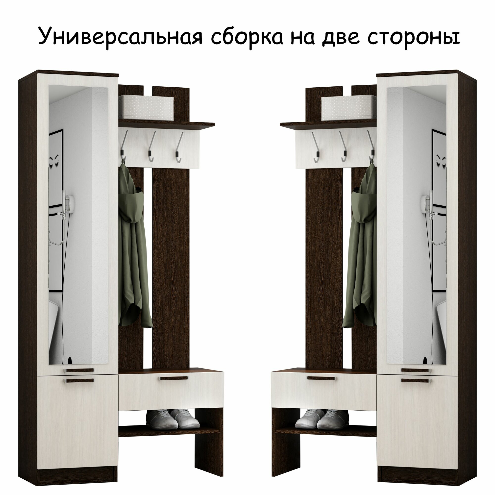 Прихожая комплект София от Линаура, с зеркалом, с обувницей, шкафом и ящиком, 95x195x36 см. Венге/Анкор светлый интересное: