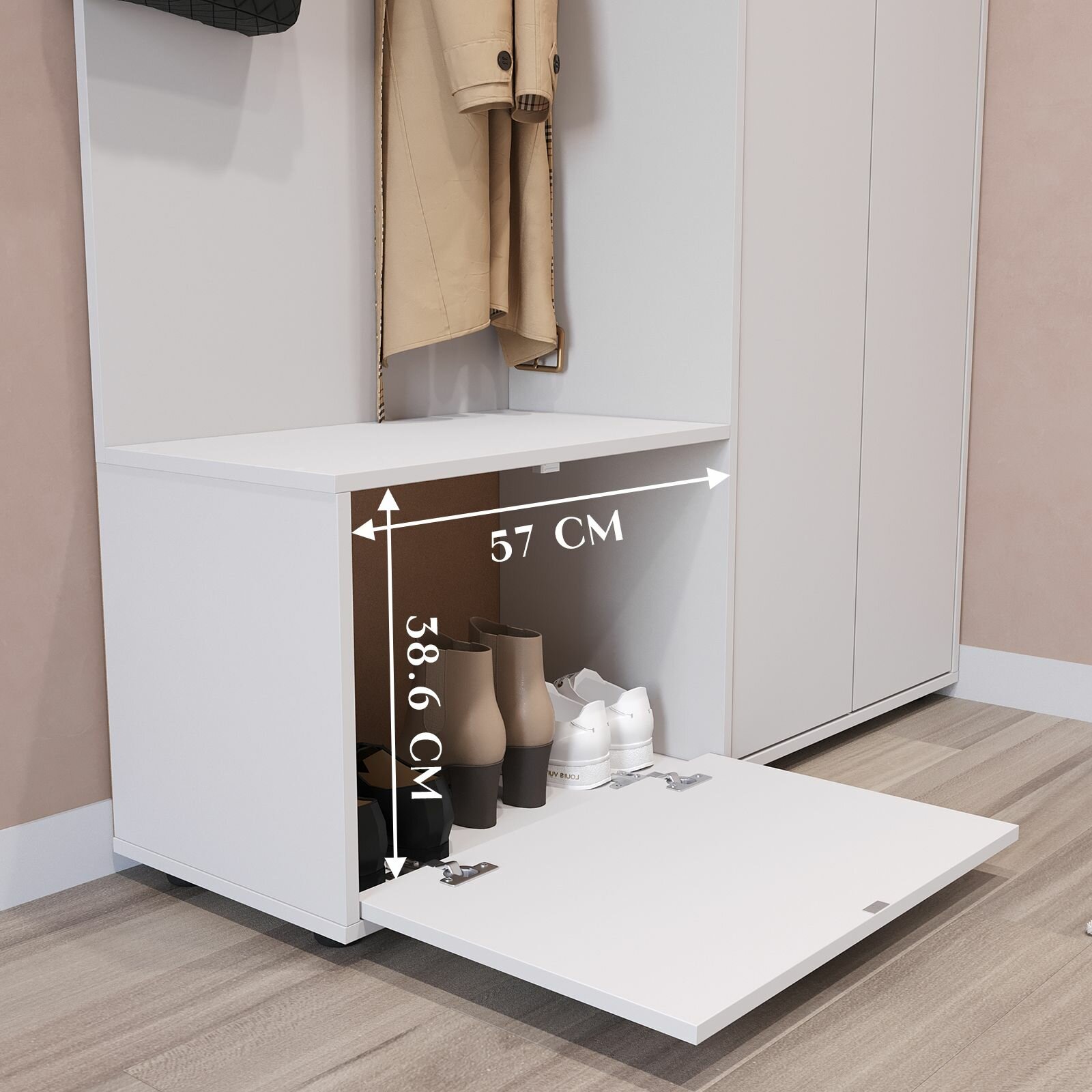 Купить Прихожая Астерия с вешалкой, обувницей и распашным шкафом, ЛДСП Белое гладкое