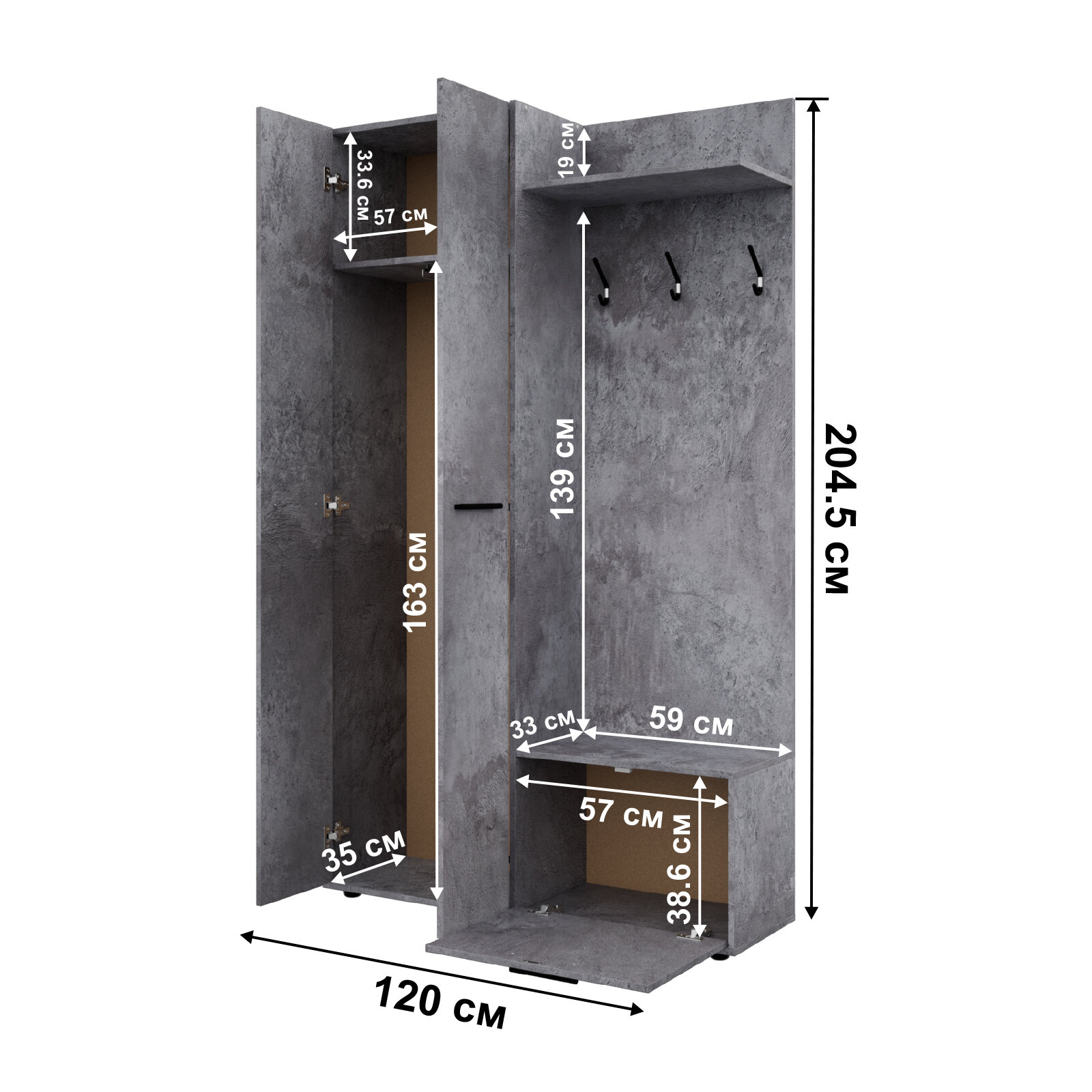 Купить Прихожая Letta Астерия Цемент, серый, современная, 1200x2045x354 см