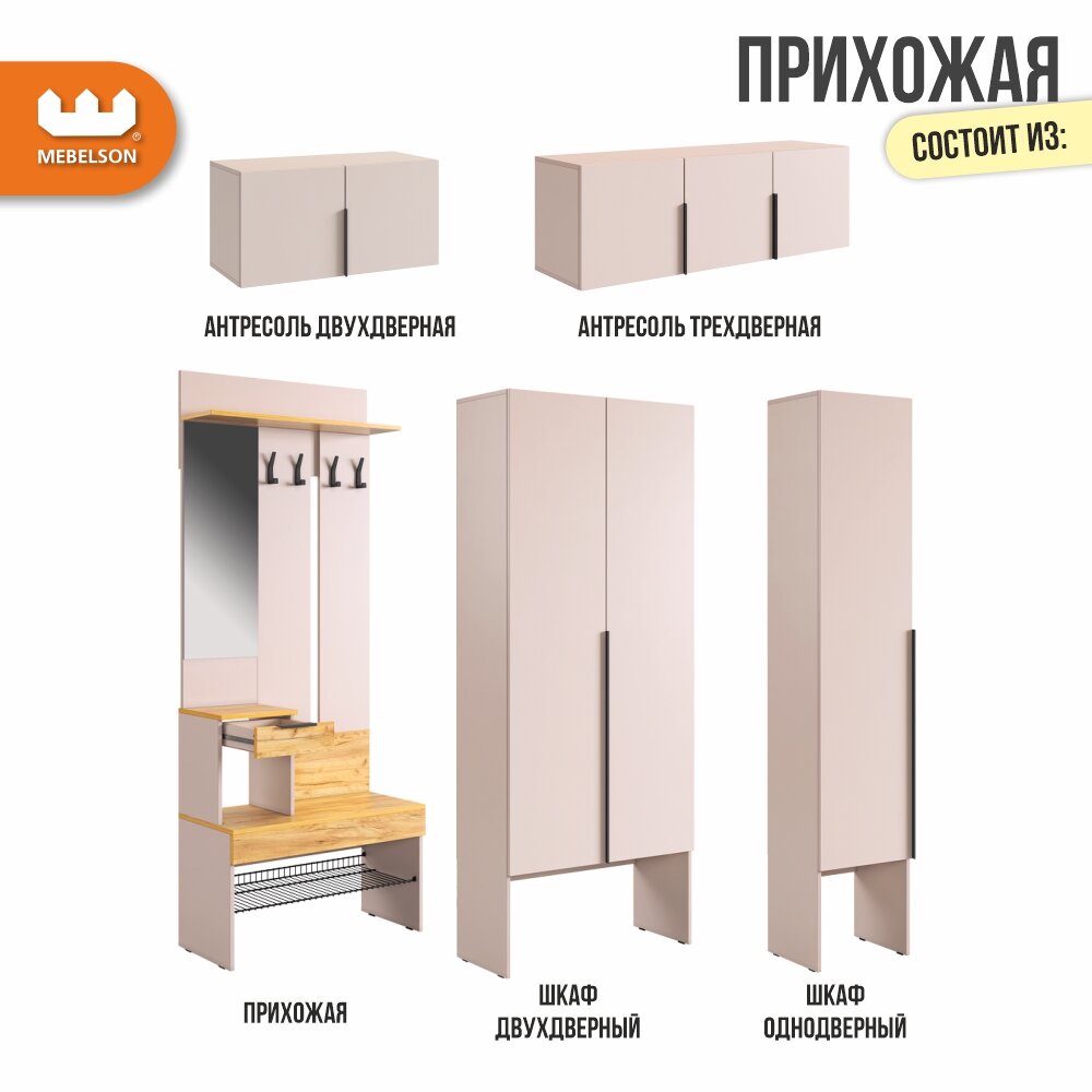 Модульная прихожая "Баско" К7, цвет Белое дерево, 200*35*235 см, Mebelson интересное: