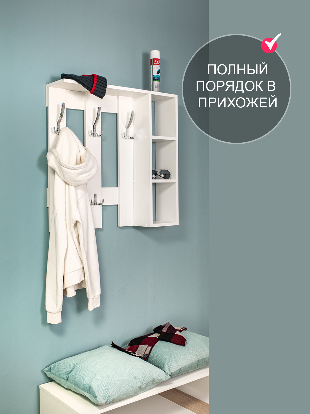 Вешалка настенная в прихожую "На крючок 01" белый интересное: