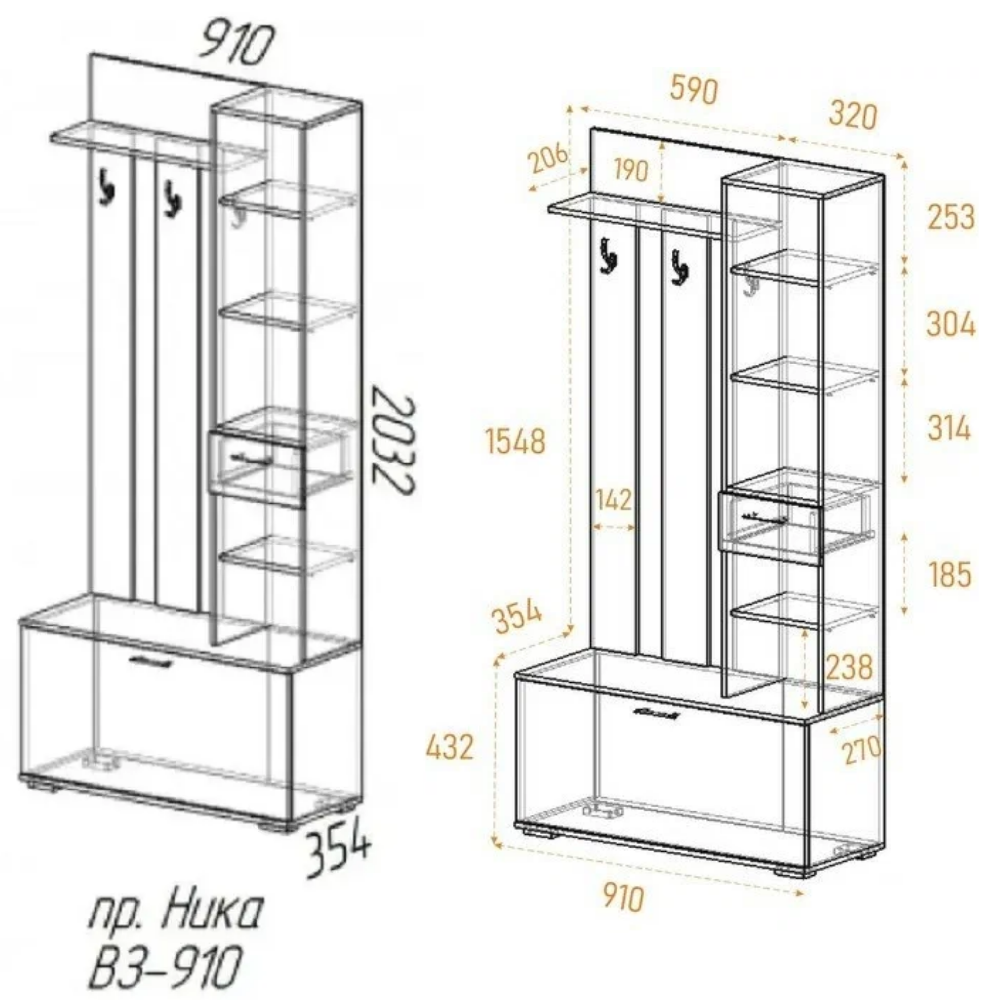 Угловая вешалка - пенал, полка торцевая Ника, ЛДСП, 35 х 35 см, цвет белый
