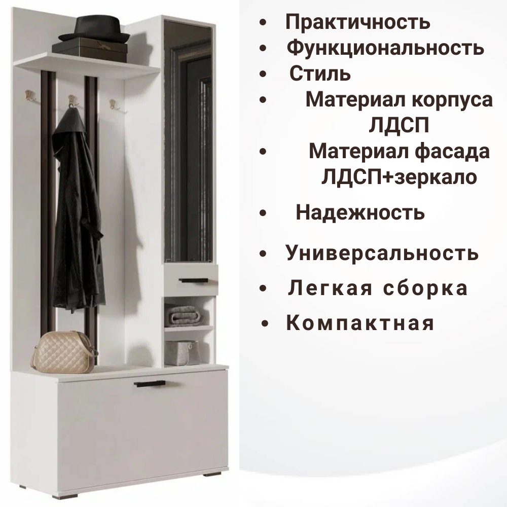 Купить Прихожая Ника, вешалка с зеркалом, ширина 91 см, ЛДСП, цвет белый гладкий