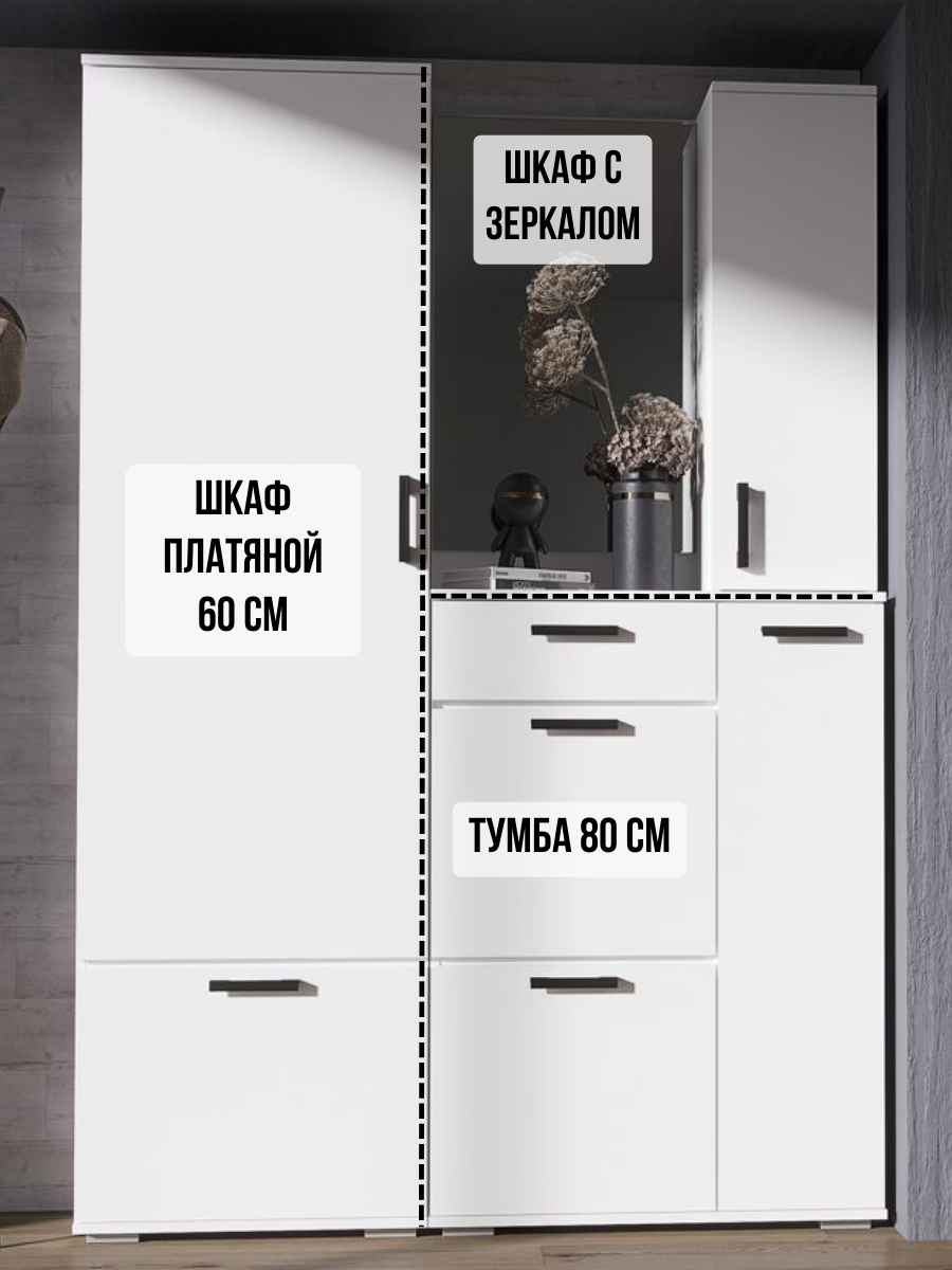 Прихожая Ника, вешалка с зеркалом, ширина 91 см, ЛДСП, цвет белый гладкий