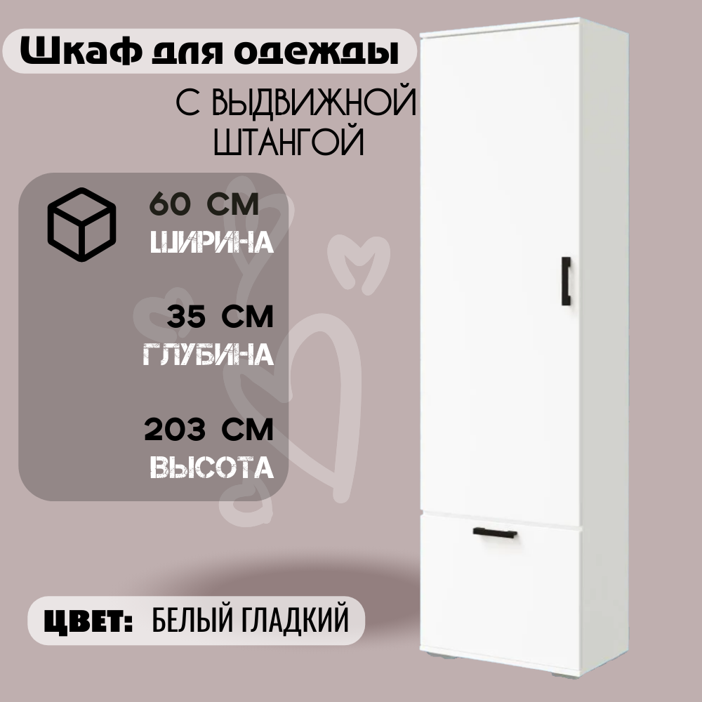 Купить Шкаф для одежды платяной, с выдвижной штангой, ширина 60 см, цвет белый, ЛДСП