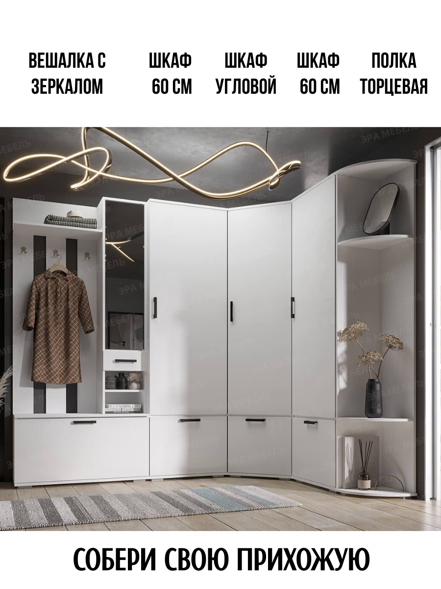 Купить Угловая вешалка - пенал, полка торцевая Ника, ЛДСП, 35 х 35 см, цвет белый