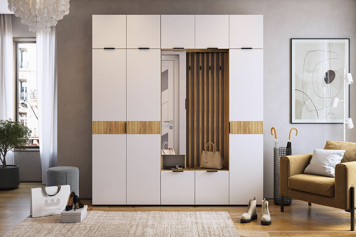 Комплект мебели в прихожую, Beree, Белый/Дуб , 200 х 222,6 х 35 см (ШхВхГ) интересное: