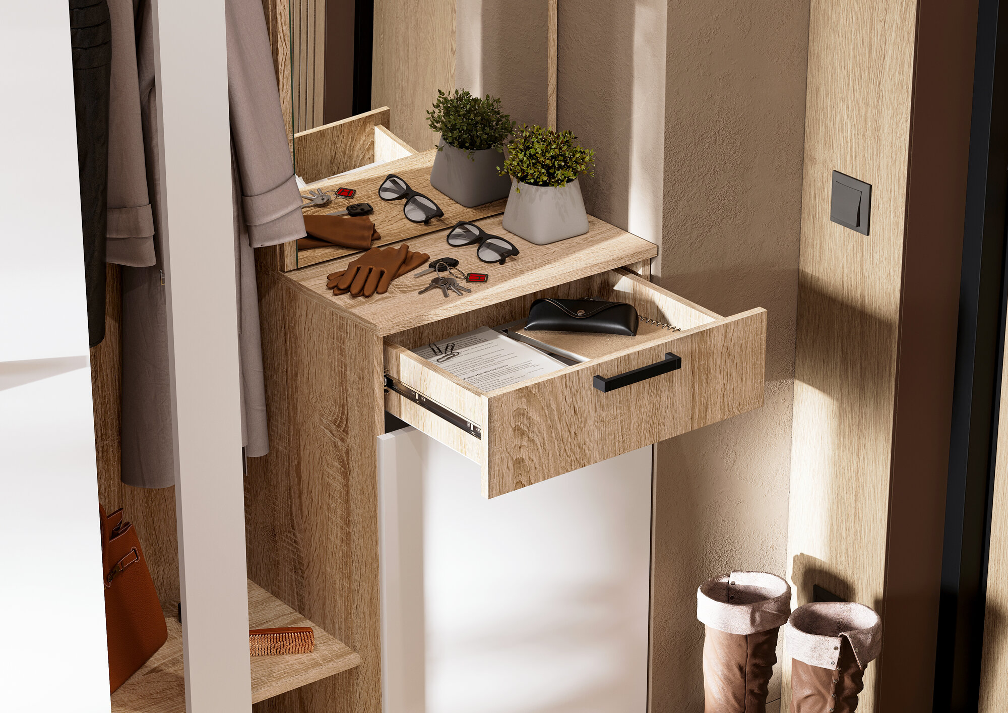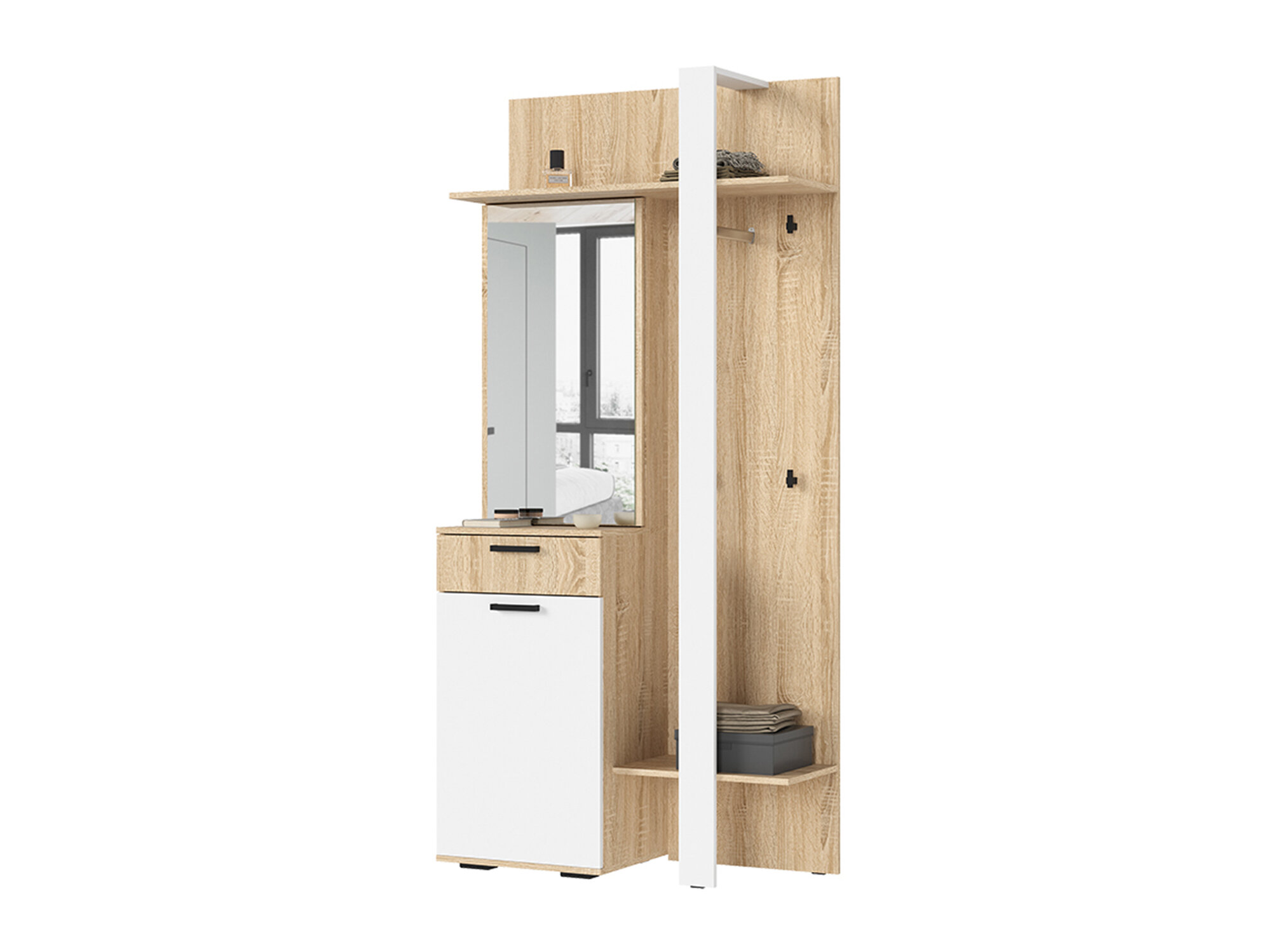 Прихожая с зеркалом САНСА ПР-01 (1000х2100х400) цвет Дуб сонома - Белый интересное: