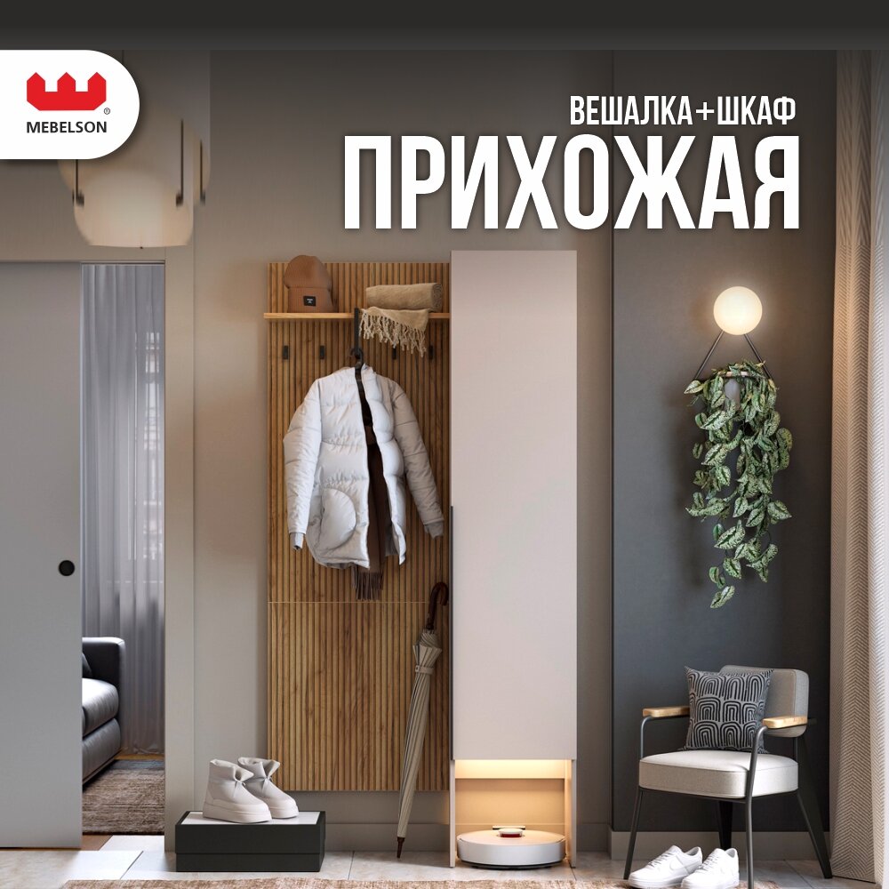 Прихожая "Мебельсон К4", ЛДСП дуб крафт золотой/кашемир, 100*35*195 см. интересное:
